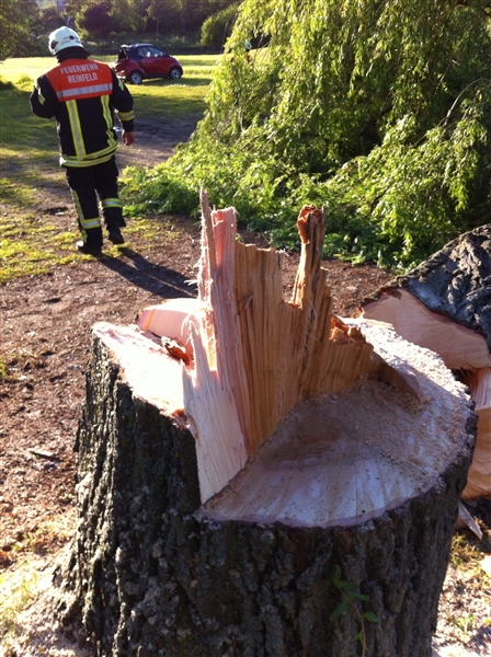 Auf einem Parkplatz brach ein Teil eines Baumes ab und stürzte auf ein darunter geparktes Fahrzeug. Glücklicherweise befand sich niemand in dem PKW. Die Feuerwehr Reinfeld zersägte die heruntergestürzten Äste und fällte den Rest des Baumes, da auch dieser herunter zu fallen drohte. |
