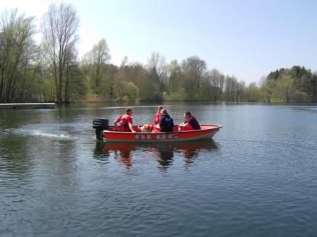 Am Sonntagmorgen fuhren vier Kameraden der FF-Reinfeld mit dem Mehrzweckboot zum Großensee. Dort war eine gemeinsame Ausbildung mit der Rettungshundestaffel der DLRG Stormarn angesetzt. Bei strahlendem Sonnenschein wurde die Wasserortung mit Rettungshunden trainiert.
