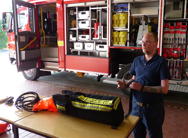 Im Anschluss beschäftigten wir uns mit der Atemschutzüberwachung, der Atemschutznotfalltasche und verschiedener Möglichkeiten eines effizienten Schlauchmanagements. In zwei kurzen Fallbeispielen wurden anschließend die ersten Minuten eines Brandeinsatzes trainiert. Im Fokus standen hier die verschiedenen Aufgaben der einzelnen Trupps des Löschfahrzeugs, sowie die richtige Beurteilung der vorhandenen Lage. Ein gemeinsames Abendbrot unter freien Himmel bildete den Abschluss der Ausbildungseinheit.