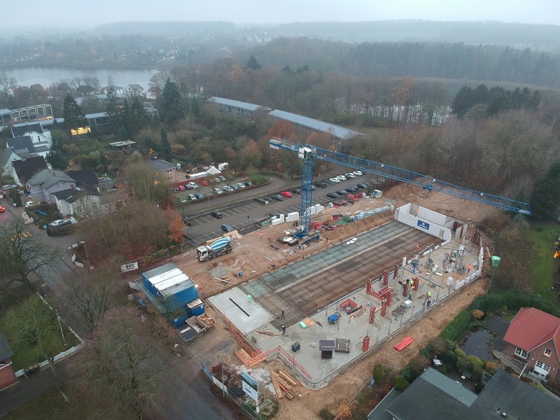 Es geht hoch hinaus – unser Erdgeschoss steht! Für jeden ist von außen sichtbar: Unsere Baustelle in der Ahrensböker Straße wächst in die Höhe.