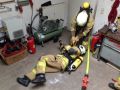 An zwei Samstagen wurden unter anderem grundlegende Vorgehensweisen im Atemschutzeinsatz, sowie das richtige Reagieren auf und Bewältigen von Atemschutznotfällen (Situationen, in denen der Atemschutztrupp selbst in Gefahr gerät) vermittelt.