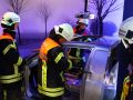 Gemeinsam mit dem ASB trainierten wir die Vorgehensweise bei einem Verkehrsunfall mit zwei beteiligten Fahrzeugen, von denen sich eins in Seitenlage befand und eine Rauchentwicklung zu erkennen war. Mitglieder der "Realistischen Unfalldarstellung" des ASB schminkten hierfür drei Verletztendarsteller, um eine realitätsnahe Übungsstelle zu simulieren.