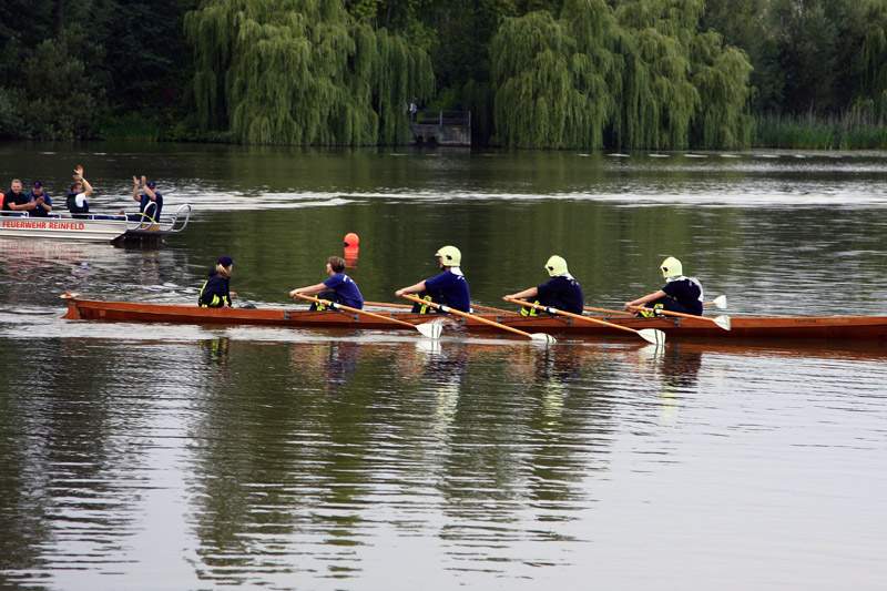 Am 10.09.11 fand im Rahmen des Karpfenfestes die Ruderregatta der Firmen und Vereine mit insgesamt zwölf Teilnehmerbooten statt. Ausrichter war die Reinfelder Rudergemeinschaft (RRG). Die Freiwillige Feuerwehr Reinfeld stellte eine Besatzung mit vier Kameraden für den Doppelvierer. Die Steuerfrau wurde von der RRG gestellt. Durch gutes Training unter der Anleitung der RRG in der Vorbereitung konnte das Team ihre Zeiten von Lauf zu Lauf immer wieder verbessern und setzte sich im Finale verdient gegen die Fa. Camfil durch.