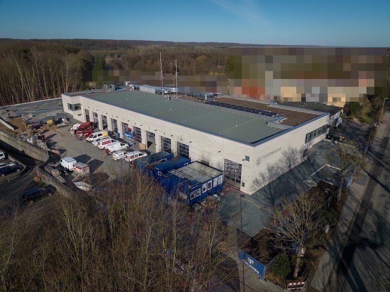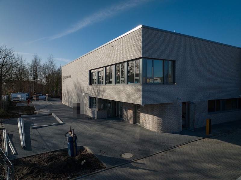 Seit unserem 2. Tagebucheintrag ist für alle weithin erkennbar sehr viel passiert. In den letzten Monaten waren viele Beteiligte auf allen Seiten immens bemüht, den Baufortschritt weiter voranzutreiben. Neben der Installation der erforderlichen Gebäudetechnik wie Heizung, Photovoltaik-Anlage und Sanitärinstallation wurde inzwischen auch die Absauganlage in der Fahrzeughalle sowie die Hallentore eingebaut. Rund ums Gebäude sind die Pflasterarbeiten derzeit in vollem Gange und werden in naher Zukunft abgeschlossen sein.