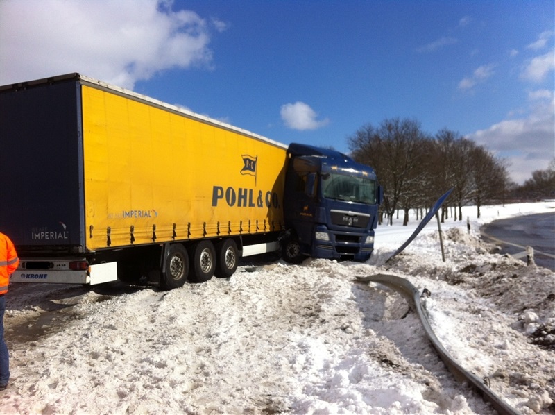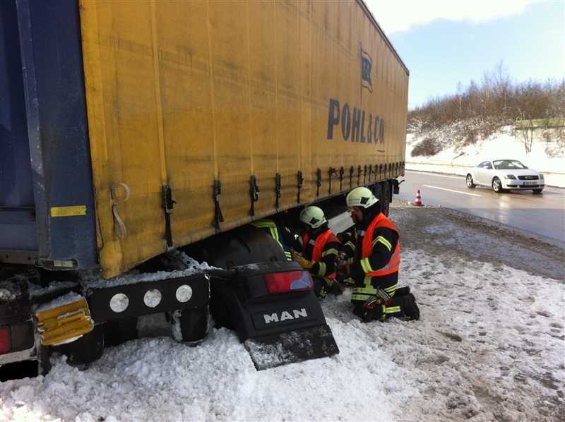 Die FF Reinfeld wurde zu einem Verkehrsunfall mit LKW auf die Autobahn 1 alarmiert. Direkt in der Abfahrt Lübeck-Moisling war ein LKW von der Fahrbahn abgekommen und hatte sich den Kraftstofftank aufgerissen. Dieser wurde von den Einsatzkräften abgedichtet, ausgelaufener Kraftstoff wurde mit Ölbindemittel abgestreut und das Bergungsunternehmen wurde beim Herausziehen des LKW unterstützt. |