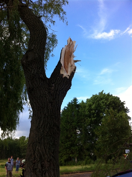 Auf einem Parkplatz brach ein Teil eines Baumes ab und stürzte auf ein darunter geparktes Fahrzeug. Glücklicherweise befand sich niemand in dem PKW. Die Feuerwehr Reinfeld zersägte die heruntergestürzten Äste und fällte den Rest des Baumes, da auch dieser herunter zu fallen drohte. |