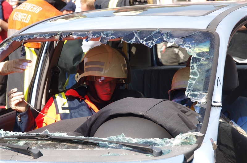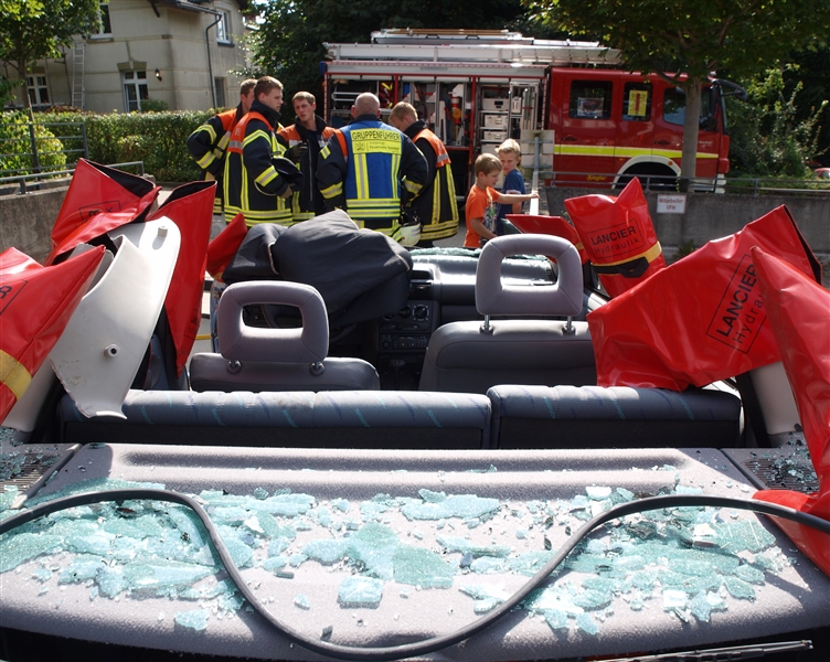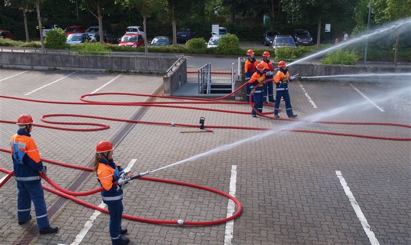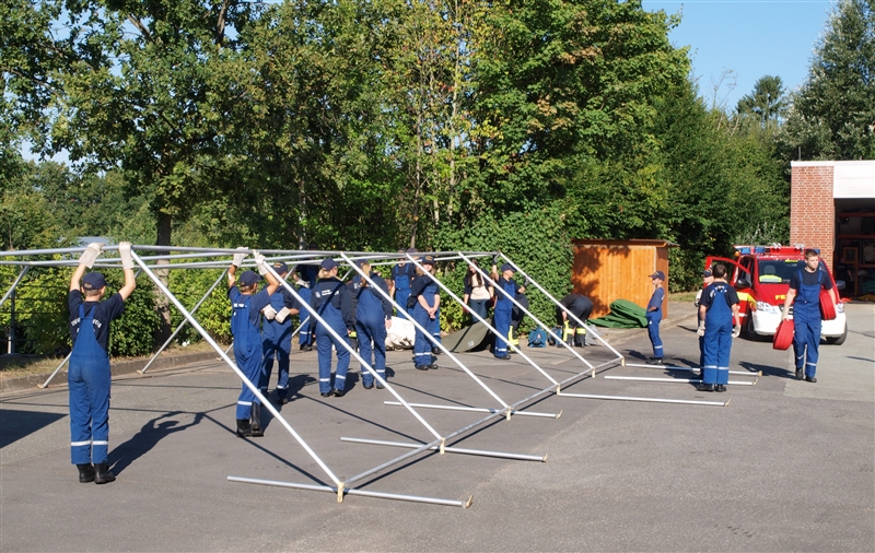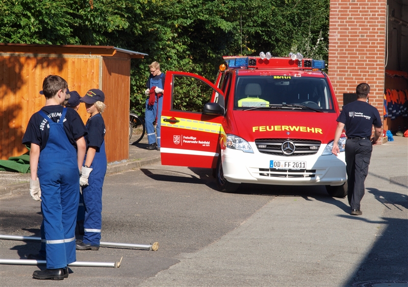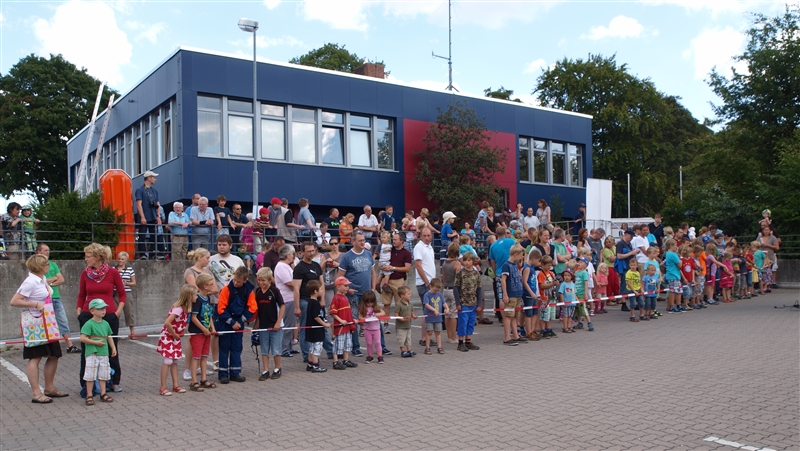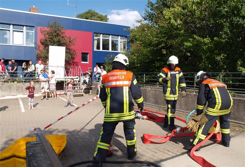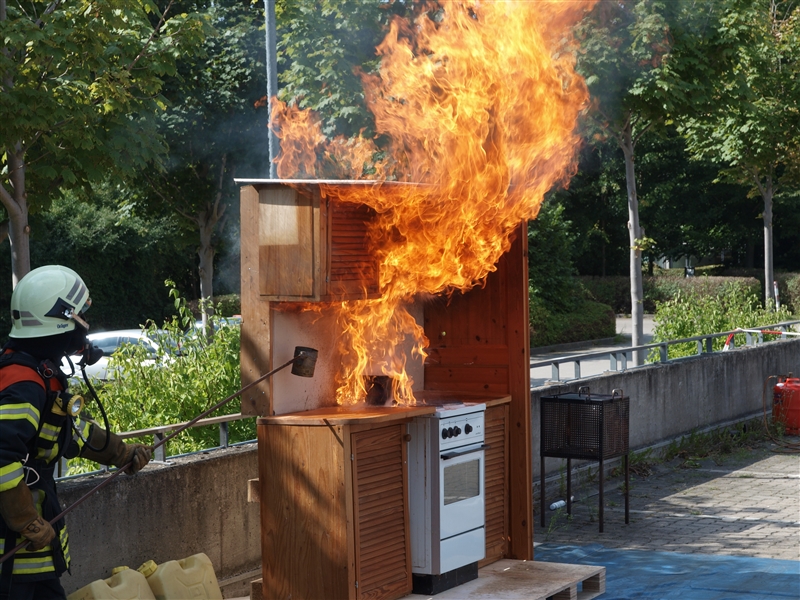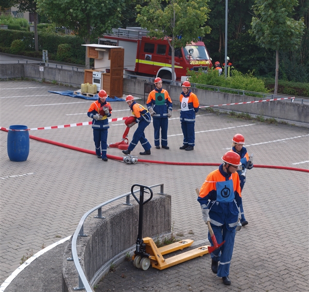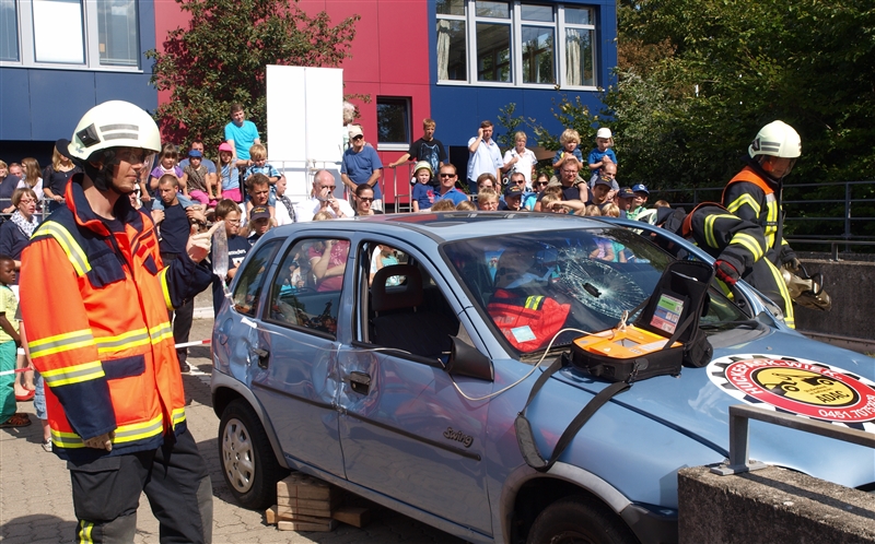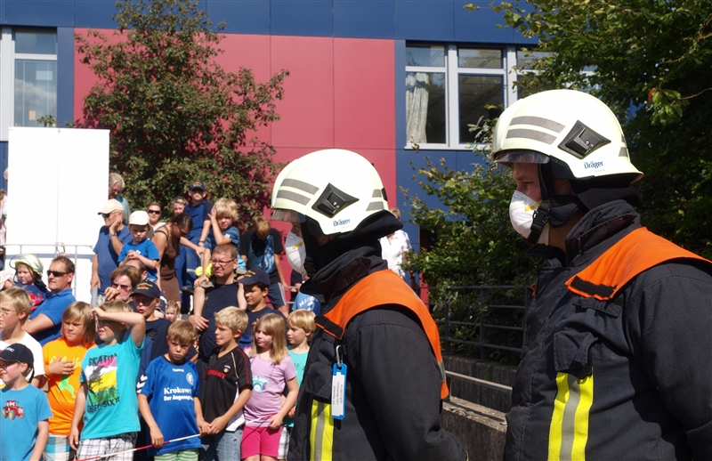 Bei verschiedenen Vorführungen, vom PKW-Brand bis zum Gefahrguteinsatz, konnten wir den Besuchern zeigen, wie die Feuerwehr arbeitet und welch moderne Technik uns dabei zur Verfügung steht. Zudem bestand im Nachhinein die Möglichkeit, näher an das Geschehen heranzutreten und Gerätschaften auch mal in die eigenen Hände zu nehmen. Für die "kleinen" Besucher boten wir ein Wasserspiel, eine Hüpfburg und Dosenwerfen an, was sehr gut angenommen wurde. Auch für das leibliche Wohl wurde gesorgt; in Form von reichlich Kuchen, Pommes und Leckereien vom Grill.