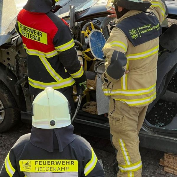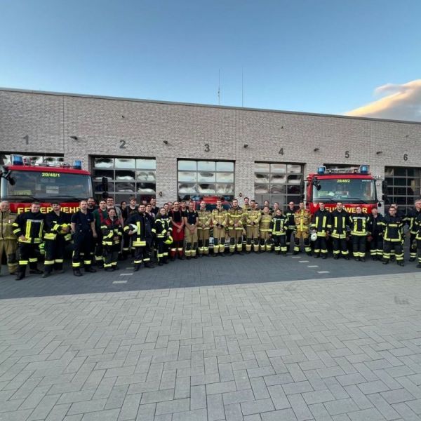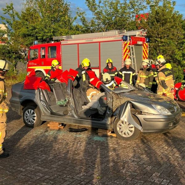 36 Anwärter des Amtes Nordstormarn waren zusammen mit der Freiwilligen Feuerwehr Bad Oldesloe bei uns zu Gast, um an ausgemusterten Fahrzeugen das technische Vorgehen bei einem Verkehrsunfall zu üben.