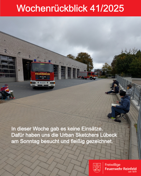 Am Sonntagvormittag hatten wir die Urban Sketchers Lübeck (@usk_luebeck) bei uns zu Besuch an der Feuerwache. Unser LF 16 und auch das HLF 2 standen Modell für die Zeichnungen. - Ein Rundgang durch die Feuerwache rundete das gemeinsame Zeichenevent ab.