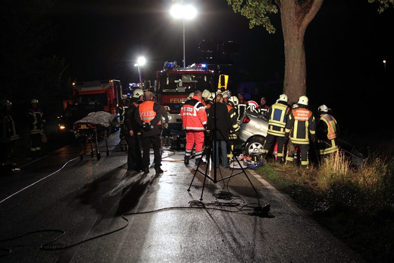 Ein PKW kam von der Fahrbahn ab und rutschte seitlich gegen einen Baum. Der Fahrer wurde im Fahrzeug eingeklemmt und musste von der Feuerwehr Reinfeld mit schwerem technischen Gerät gerettet werden. Leider verstarb der Fahrer noch an der Unfallstelle. Einen ausführlichen Bericht finden Sie hier.
