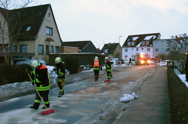 | Die Feuerwehr Reinfeld wurde zu einer längeren Ölspur gerufen die sich durch mehrere Straßenzüge des Reinfelder Stadtgebietes hinzog. Diese wurde so gut es ging mit Ölbindemittel abgestreut. Da aber leider einige Mengen Öl schon in die Oberflächenentwässerung geflossen waren, wurde das Umweltamt und ein Mitarbeiter der Stadt Reinfeld hinzugezogen. Es wurde in Absprache mit diesen Diensten eine Ölsperre im Neuhöfer Teich gesetzt. |