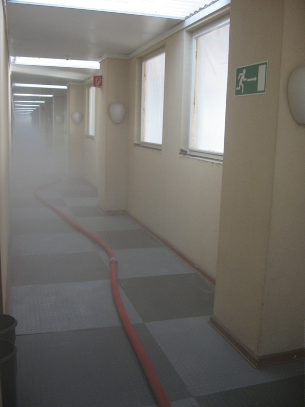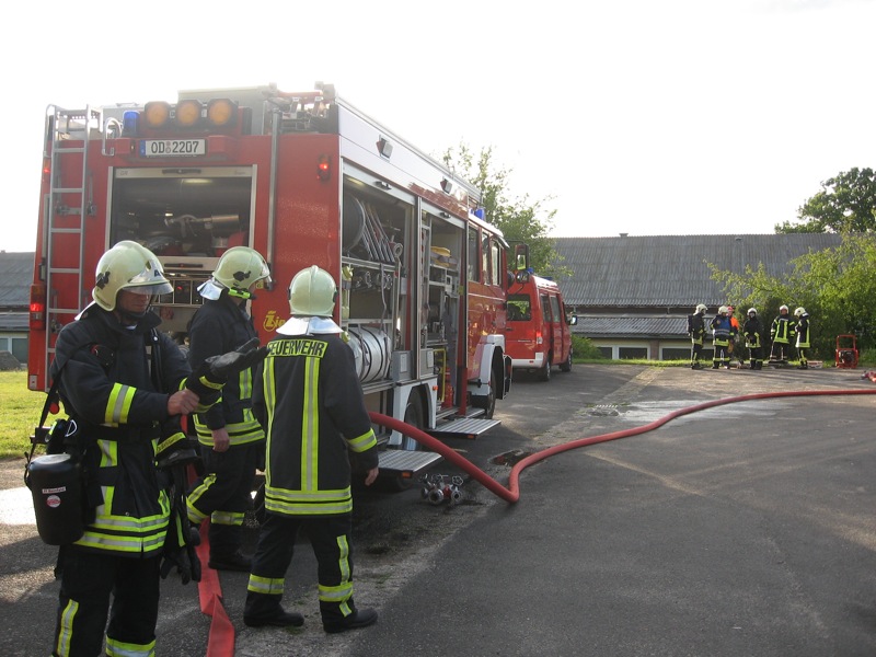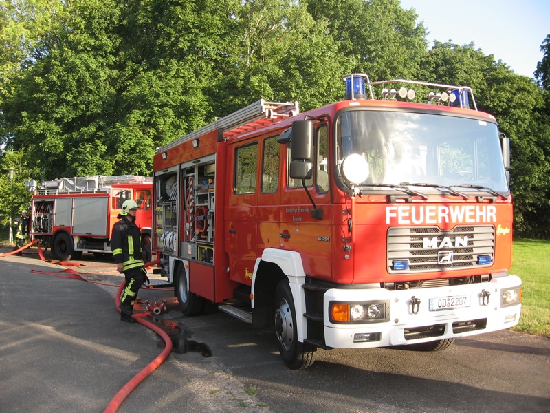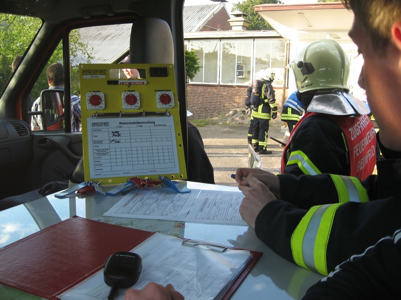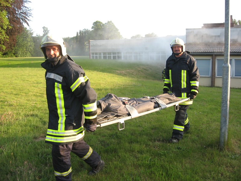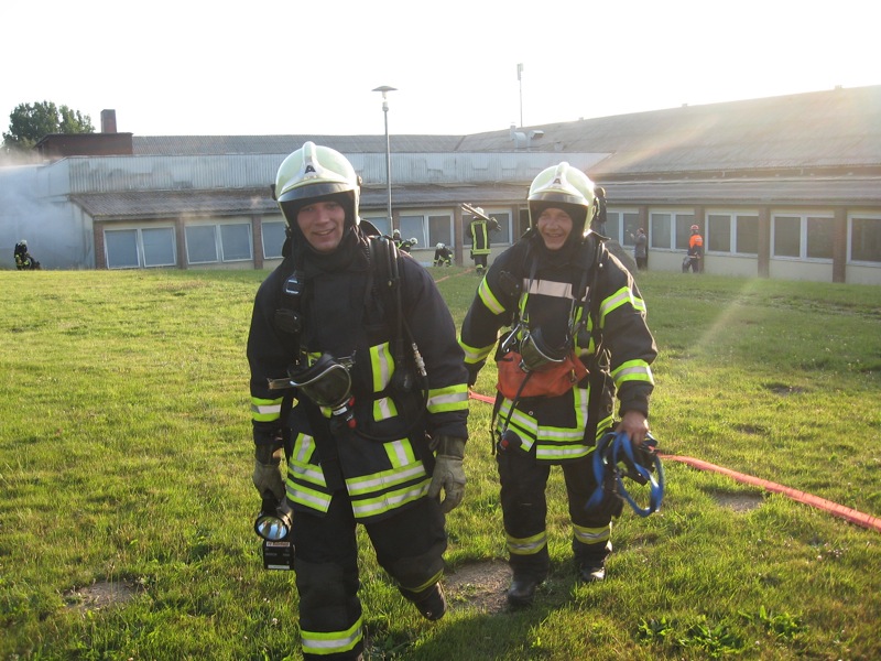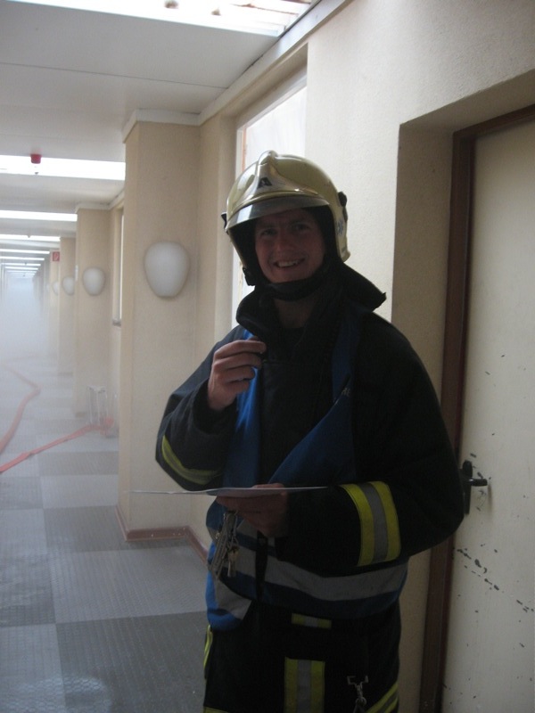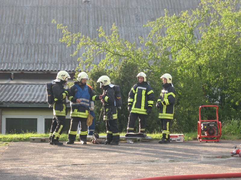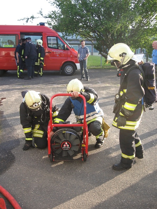 Für Außenstehende muss das Ganze ziemlich realistisch ausgesehen haben, allerdings war es "nur" eine von unserer Wehrführung geplante Alarmübung bei der Firma alfaLot. Es war kein wirkliches Feuer, sondern nur Diskonebel, der die Brandmelder zum Auslösen gebracht hat. Auch wurden keine richtigen Personen vermisst, sondern nur Übungspuppen. Auf diesem Weg wurde auch gleich die Brandmeldeanlage überprüft, die wirklich einwandfrei funktionierte.