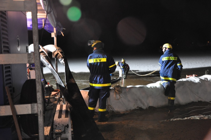 Sonntag, 07.03.2010 Am Sonntagabend wurde der Pegel auf einen annehmbaren Wert reduziert, weshalb man sich entschied, die entfernten Ortsverbände des THW aus dem Einsatz zu entlassen.