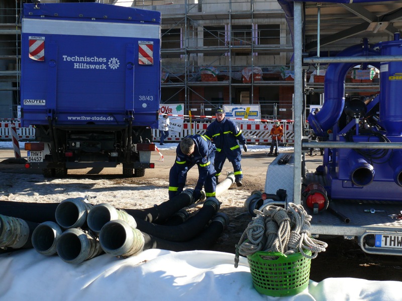 Donnerstag, 04.03.2010 Der Pegelstand entwickelte sich zu Gunsten der Einsatzkräfte und es wurde daher eine weitere Großpumpe des THW Stade alarmiert (15.000l/min).