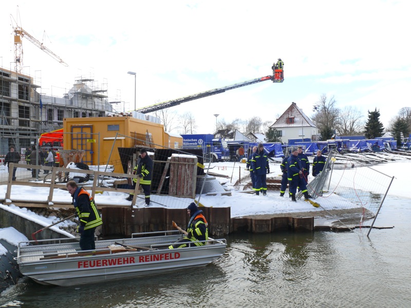 Montag, 08.03.2010 Nachdem am Montag der Pegel noch weiter gesenkt – insgesamt um 90cm – werden konnte, entschied sich der Bürgermeister, den Einsatz zu beenden und alle restlichen Kräfte zu entlassen. Am Abend unterstützen die Kräfte der Feuerwehr Reinfeld dann beim Abbau, welcher gegen 22 Uhr beendet war. Damit ging einer der längsten Feuerwehreinsätze in der Geschichte Reinfelds zu Ende und alle eingesetzten Kräfte freuten sich auf einen normalen Tagesablauf und insbesondere auf eine normale Nacht.