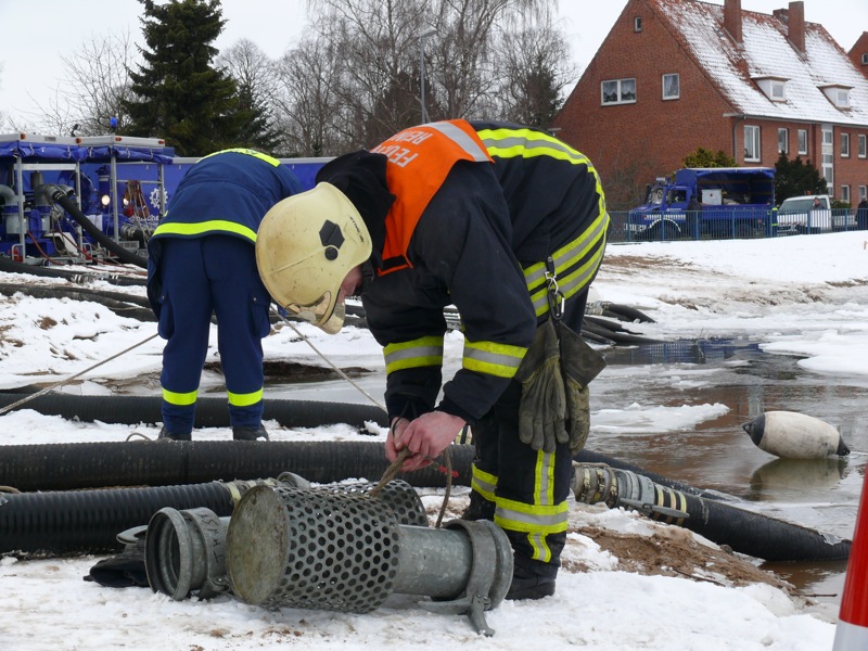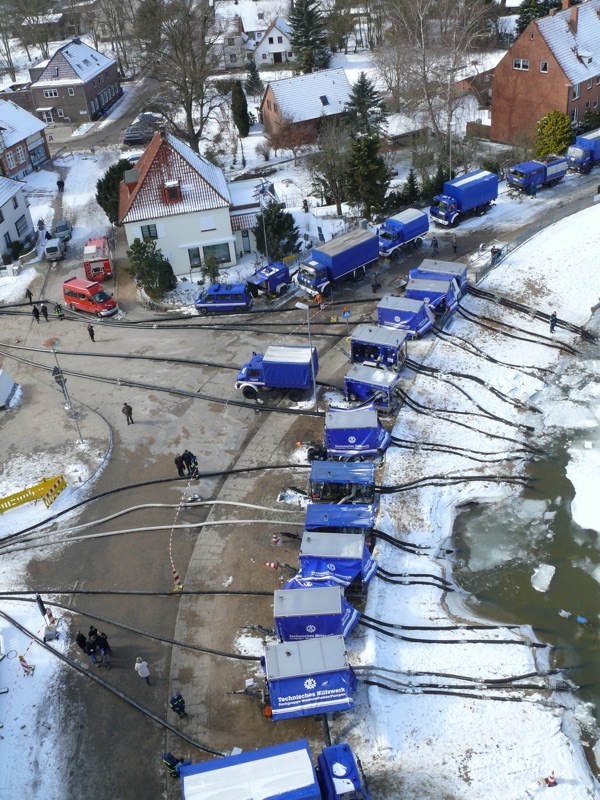 Samstag, 06.03.2010 Ebenfalls wurden die Pumpen aus Bremen-Nord und Bremen-Ost alarmiert und am Samstagmorgen in Stellung gebracht. Somit konnte nun eine Pumpenleistung von bis zu 100.000 Litern pro Minute erreicht werden. Immer wieder war auch das THW Neumünster mit der Fachgruppe Logistik im Einsatz, um die Pumpen und die Fahrzeuge mit Dieselkraftstoff zu versorgen.