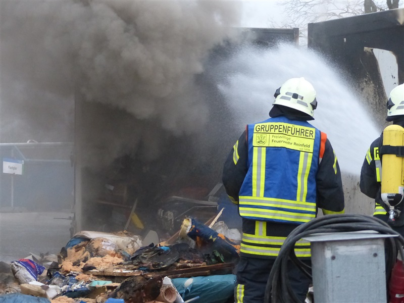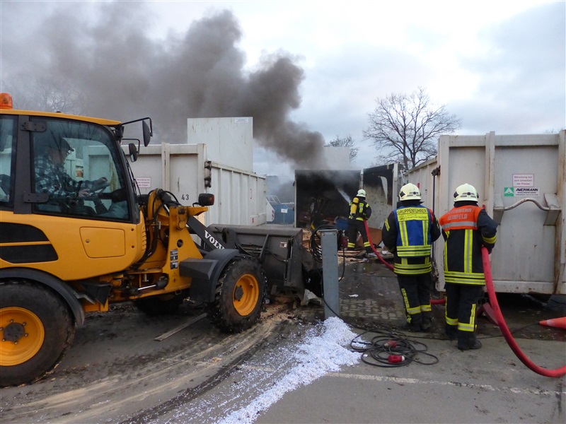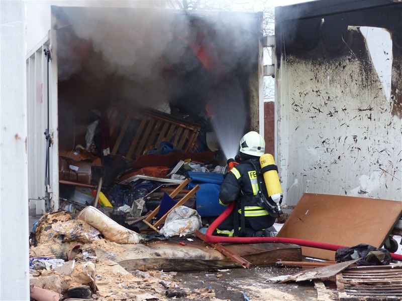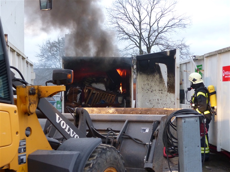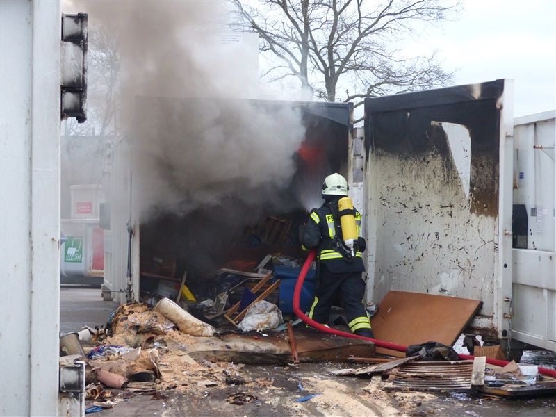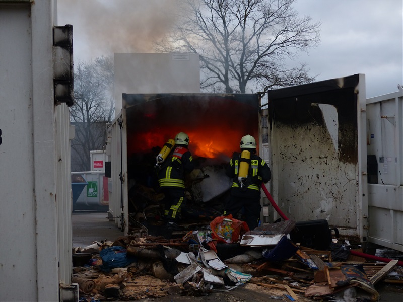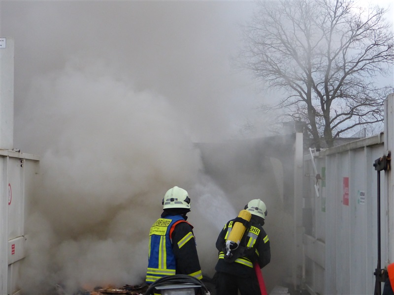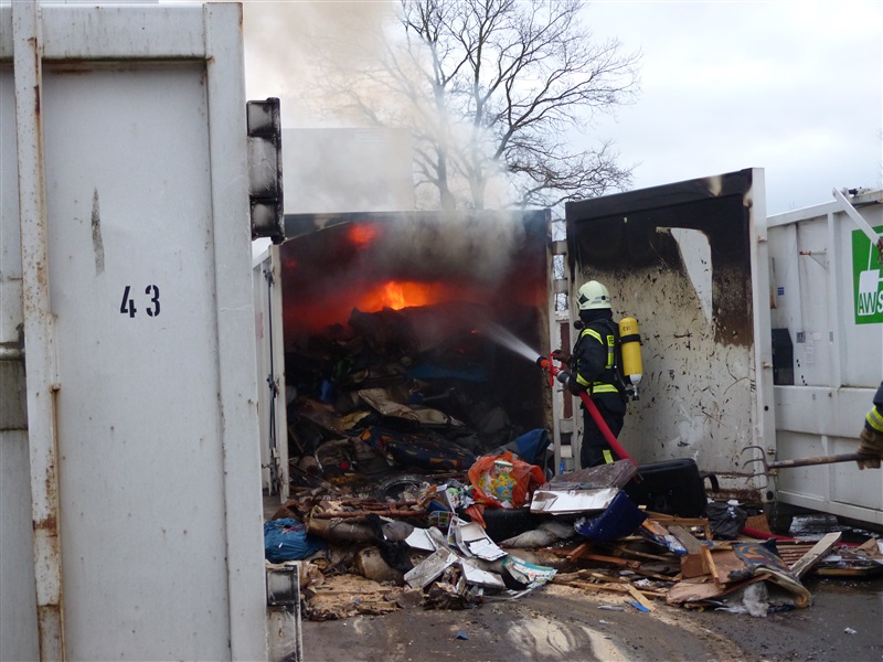 | Aus einem 20m³ fassenden Sperrmüllcontainer stieg eine Rauchwolke auf, die ein Passant entdeckte und die 112 wählte. Vor Ort wurde der Container geöffnet, es brannte im Inneren. Der Container wurde leer geräumt und die Reste des Sperrmülls abgelöscht, ehe die Einsatzstelle an einen Mitarbeiter der Firma übergeben wurde. |