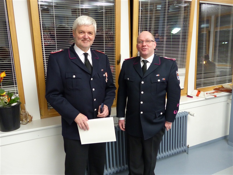 Bürgermeister Heiko Gerstmann ehrte dann noch Hartmut Kaldun mit dem Brandschutzehrenzeichen in Silber.