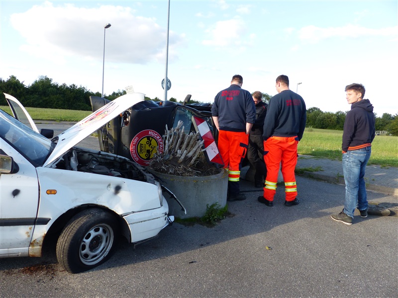 Gemeinsam mit dem ASB trainierten wir die Vorgehensweise bei einem Verkehrsunfall mit zwei beteiligten Fahrzeugen, von denen sich eins in Seitenlage befand und eine Rauchentwicklung zu erkennen war. Mitglieder der "Realistischen Unfalldarstellung" des ASB schminkten hierfür drei Verletztendarsteller, um eine realitätsnahe Übungsstelle zu simulieren. Die Besatzungen der beiden ersteingetroffenen RTW übernahmen die medizinische Versorgung der Verletzten. Kurze Zeit später trafen die Kameraden der Feuerwehr Reinfeld an der Unfallstelle ein und kümmerten sich um die Brandbekämpfung und die technische Rettung der Verletzten, von denen zwei in ihren Fahrzeugen eingeklemmt sein sollten. Nach dem Übungsende wurde der Ablauf reflektiert und die Kameraden vom ASB gaben uns wertvolle Tipps, was beim Umgang mit Verletzen beachtet werden muss.