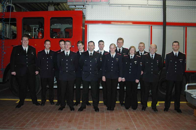Tobias Koltze wurde für weitere sechs Jahre zum Gruppenführer gewählt. Gerd-Heinrich Riemann ist neuer Jugendfeuerwehrwart. Aus der Jugendwehr wurden Lisa Riemann und Lisa Haase in die Einsatzabteilung übernommen. Befördert wurden: Gerd-Heinrich Riemann, Rene Gadermann, Oliver Meyer, Christopher Sprank, Jannik Sellin zum Oberfeuerwehrmann – Jan Hartwig und Malte Siemers zum Hauptfeuerwehrmann, sowie Holger Rauschenberg zum Löschmeister. Thorsten Pichura wurde aufgrund seiner Funktion als Gruppenführer von Kreiswehrführer Gerd Riemann zum Oberlöschmeister befördert. Für langjährige Mitgliedschaft wurden Gerd-Heinrich Riemann (10 Jahre) und Klaus-Dieter Müller (30 Jahre) geehrt.
