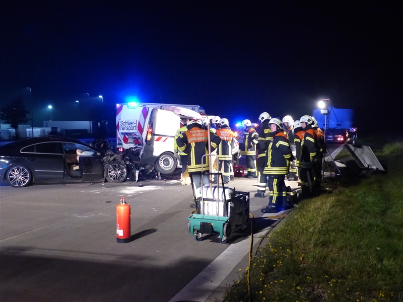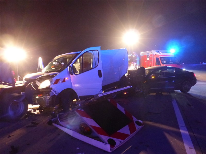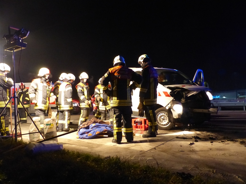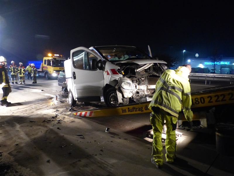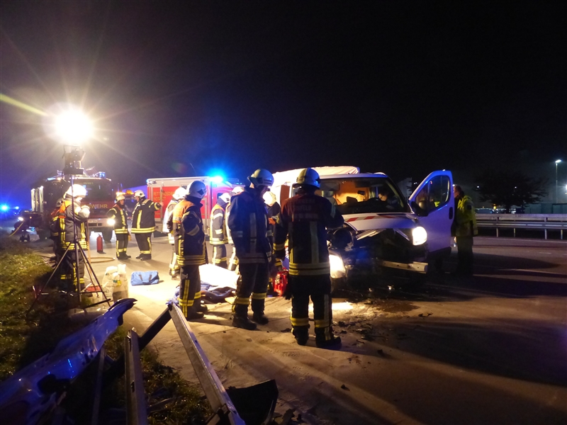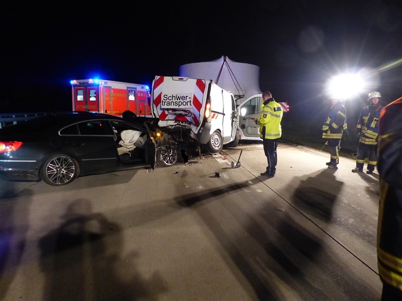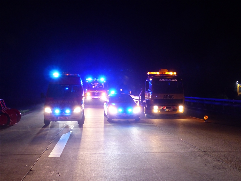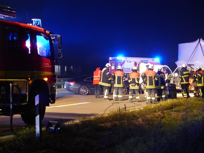 Auf der Autobahn 1 kam es kurz hinter der Anschlussstelle Reinfeld zu einem Verkehrsunfall mit drei beteiligten Fahrzeugen. Ein PKW fuhr auf einen Absicherungsbus auf, dieser wurde durch die Wucht des Aufpralls auf den dazugehörigen Schwertransport geschoben. Insgesamt wurden drei Personen verletzt, die beim Eintreffen der Feuerwehr bereits vom Rettungsdienst versorgt wurden. |
