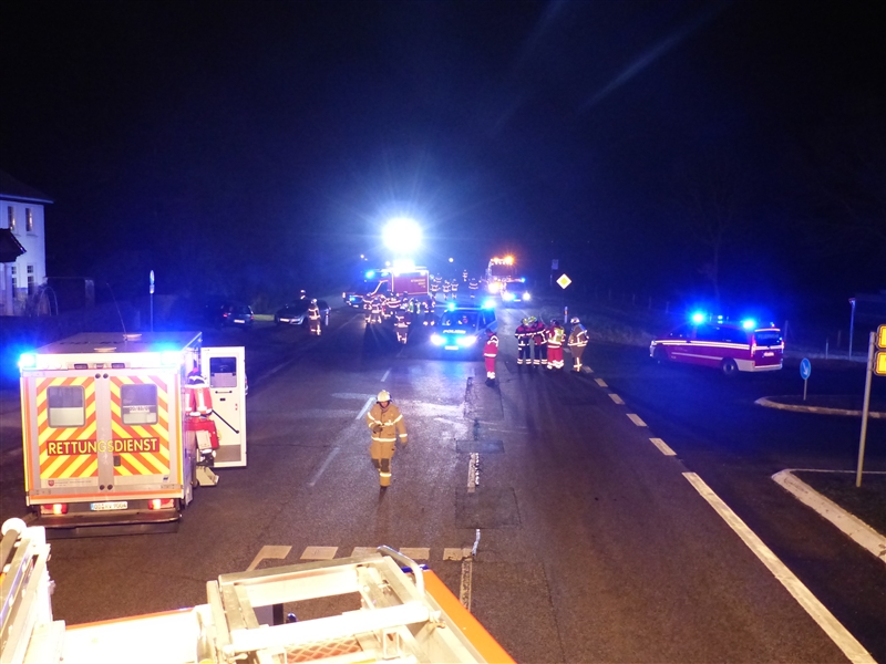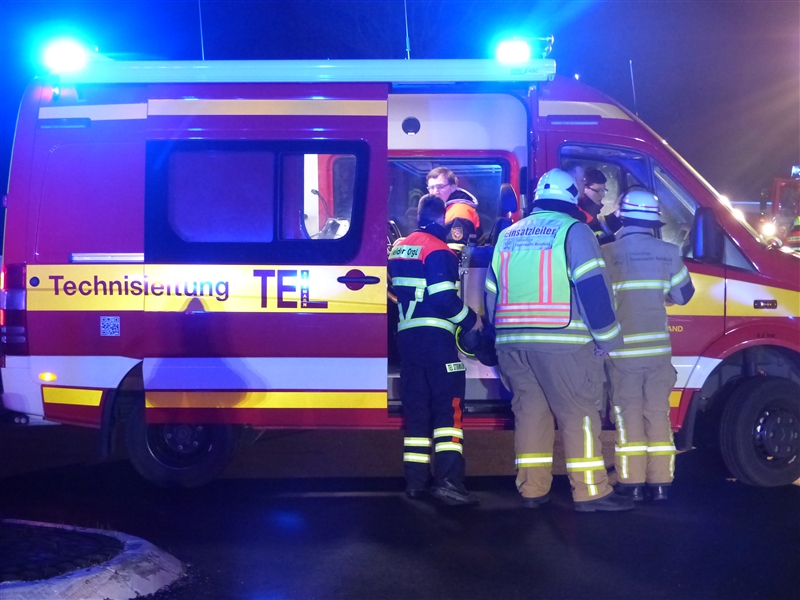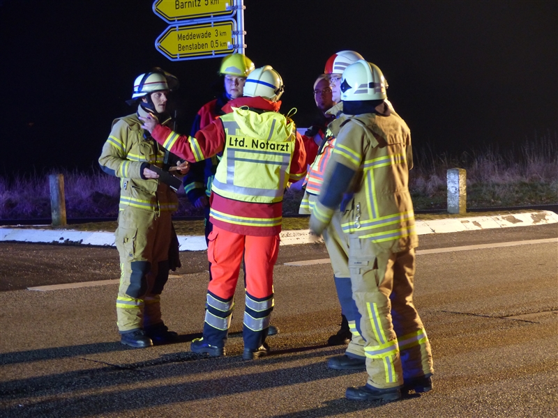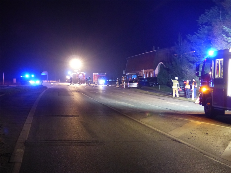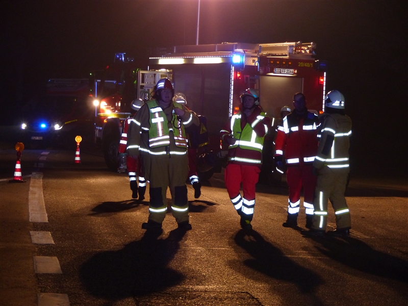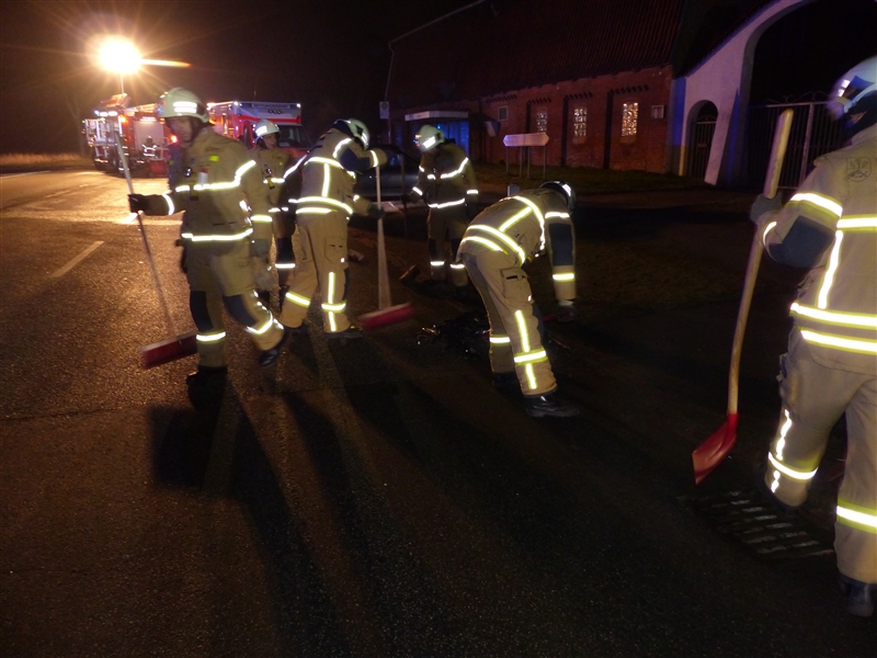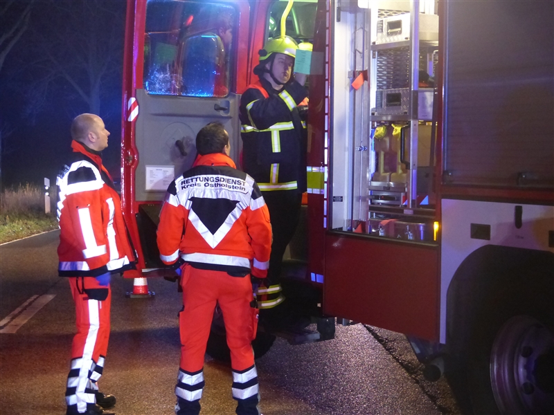 | Auf der Bundesstraße 75 kam es Höhe "Travenhof" zu einem Verkehrsunfall mit zwei beteiligten Fahrzeugen. Insgesamt gab es sechs Verletzte, die bis zum Eintreffen des Rettungsdienstes von der Feuerwehr versorgt wurden. Parallel wurden die Batterien an den beteiligten Fahrzeugen abgeklemmt und ausgelaufene Betriebsstoffe abgestreut. |