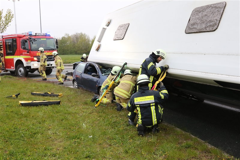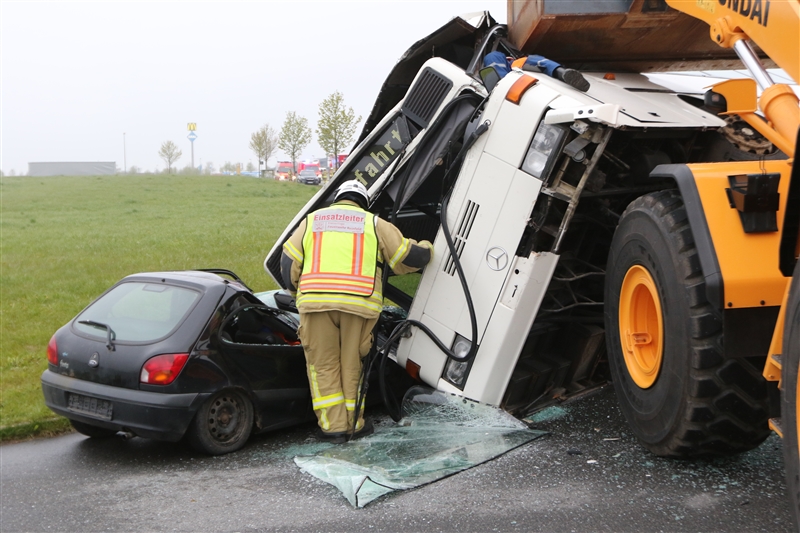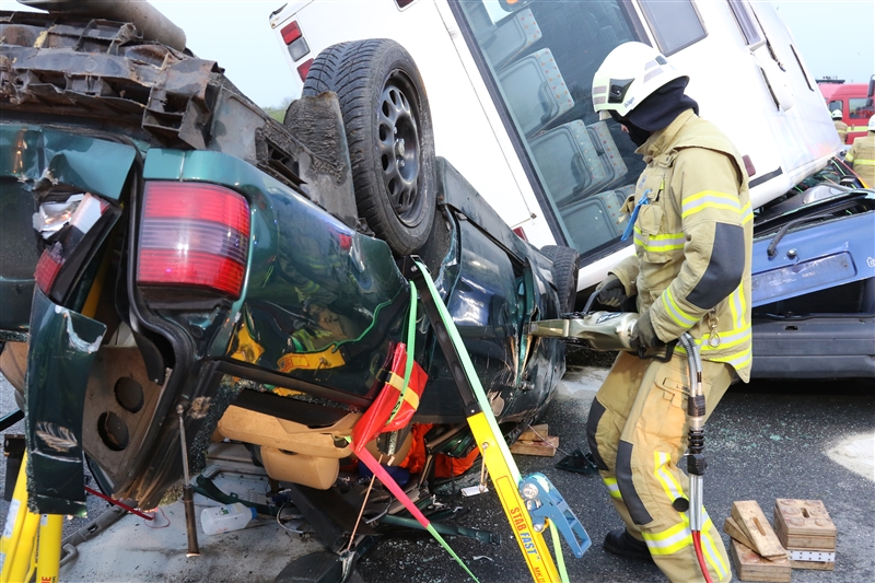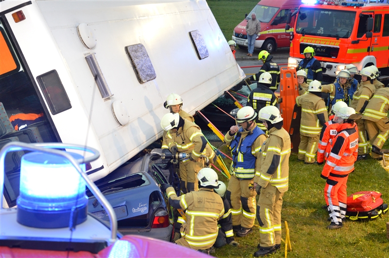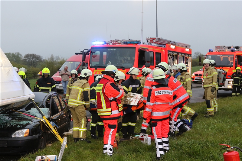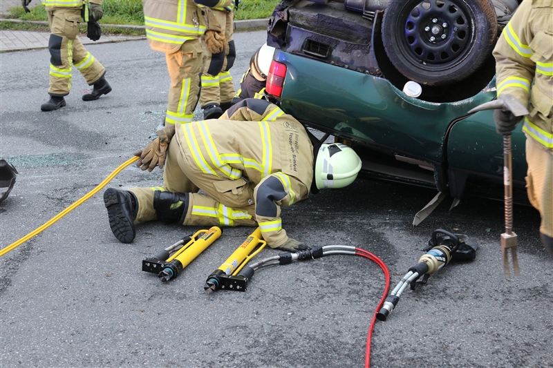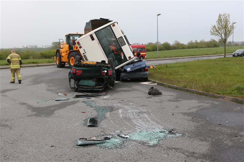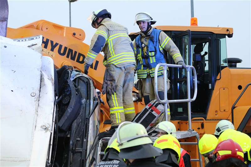 Ein Radlader und ein Bus waren zusammen gestoßen, außerdem waren noch drei PKW beteiligt - so lautete die Einsatzmeldung für diese Übung. In den PKWs waren mehrere Personen eingeklemmt, der Bus war umgestürzt und es befanden sich mehrere Verletzte darin. Gemeinsam mit den Rettungskräften des ASB und den Kameradinnen und Kameraden der Feuerwehr Bad Oldesloe wurden die Verletzten versorgt und die Eingeklemmten befreit. Wir danken den Firmen Borowski & Hopp, Wienäber und Muhlack für die Unterstützung dieser Übung!