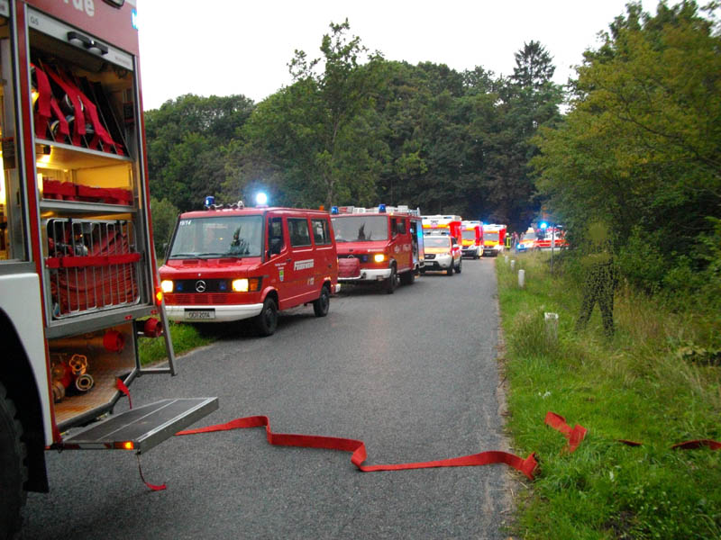 Die Feuerwehr Reinfeld wurde gemeinsam mit den Feuerwehren aus Hamberge und Stubbendorf sowie der Berufsfeuerwehr Lübeck zu einem Verkehrsunfall mit mehreren Verletzten alarmiert. Ein mit vier Personen besetzter PKW kam von der Straße ab und fuhr gegen einen Baum. Der Fahrer wurde in seinem Fahrzeug eingeklemmt, seine drei Mitfahrer wurden ebenfalls verletzt, konnten sich aber selbst befreien. Die FF Reinfeld unterstütze die FF Hamberge bei der Rettung des Fahrers. Bilder: © Freiwillige Feuerwehr Hamberge |