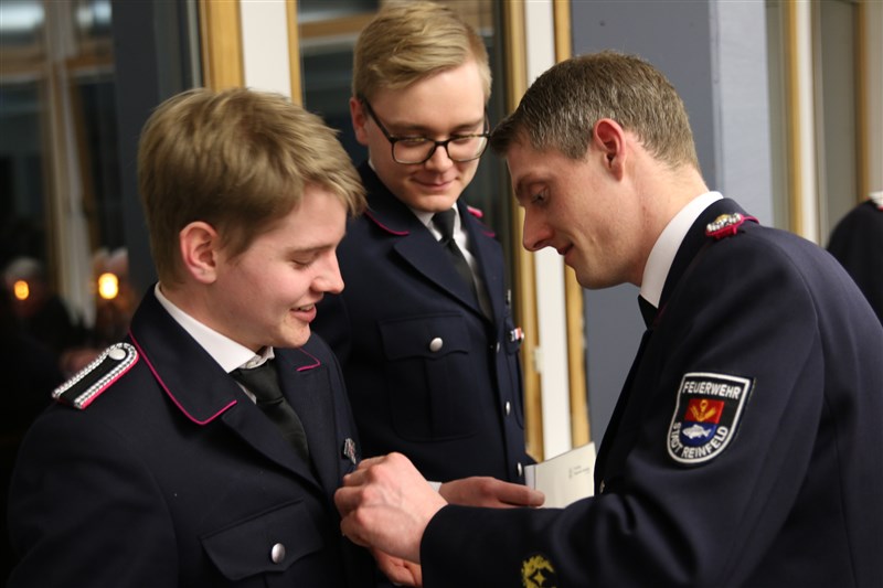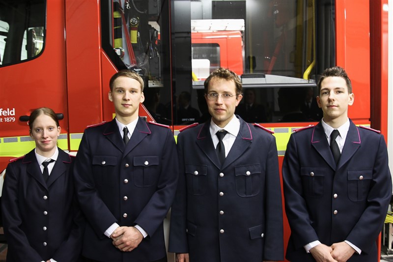Im weiteren Verlauf konnten gleich vier Kameraden, nach erfolgreich abgeschlossener Grundausbildung und absolviertem Anwärterjahr, in die Einsatzabteilung übernommen werden und wurden zu Feuerwehrfrauen und Feuerwehrmännern befördert.