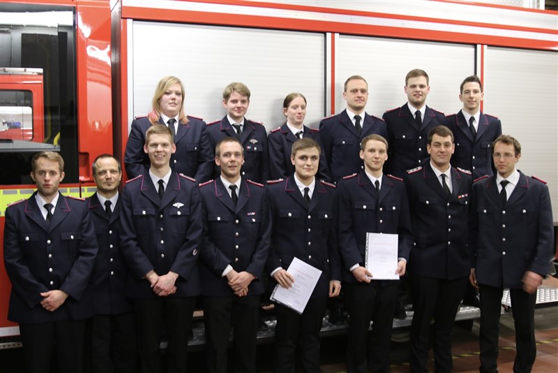 zur/zum Oberfeuerwehrfrau/mann: Saskia Teichmann, Lars Meßer, Peer Franzen, Dennis Gerber, Moritz Hoffmann