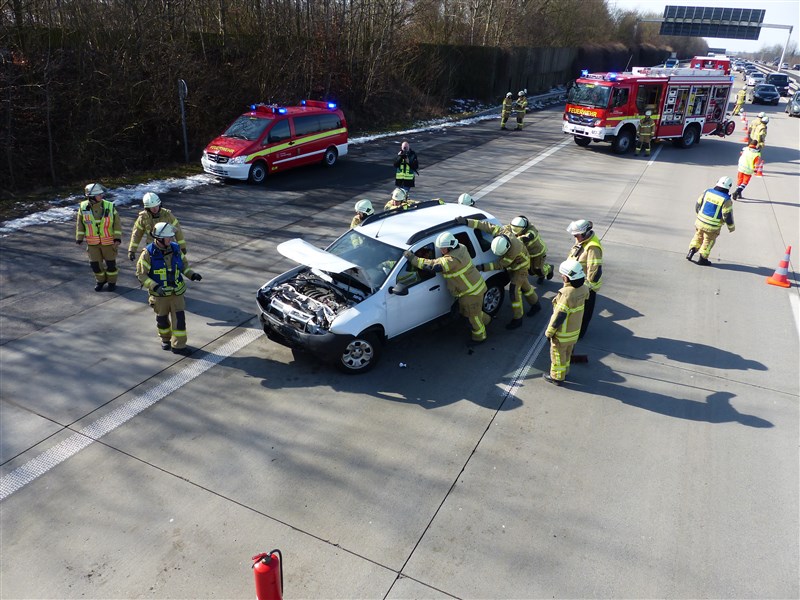 Auf der Autobahn 1 in Fahrtrichtung Lübeck kam es zu einem Verkehrsunfall mit drei beteiligten PKW. Entgegen der Alarmierungsmeldung, wonach mehrere Personen noch in ihren Fahrzeugen eingeklemmt sein sollten, waren bei unseren Eintreffen bereits alle Beteiligten aus den PKW befreit. Wir unterstützen den Rettungsdienst bei der Erstversorgung der Verletzten, bis zum Eintreffen aller angeforderten Rettungsmittel an der Unfallstelle. Im Anschluss wurden die Unfallfahrzeuge spannungsfrei geschaltet, ausgetretende Betriebstoffe abgestreut und die Bergungsarbeiten unterstützt.