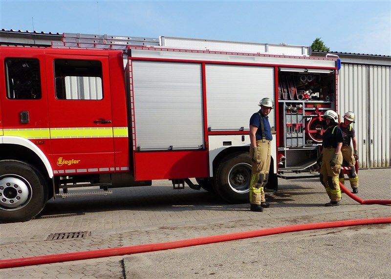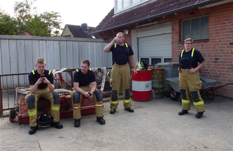 Im Anschluss beschäftigten wir uns mit der Atemschutzüberwachung, der Atemschutznotfalltasche und verschiedener Möglichkeiten eines effizienten Schlauchmanagements. In zwei kurzen Fallbeispielen wurden anschließend die ersten Minuten eines Brandeinsatzes trainiert. Im Fokus standen hier die verschiedenen Aufgaben der einzelnen Trupps des Löschfahrzeugs, sowie die richtige Beurteilung der vorhandenen Lage. Ein gemeinsames Abendbrot unter freien Himmel bildete den Abschluss der Ausbildungseinheit.