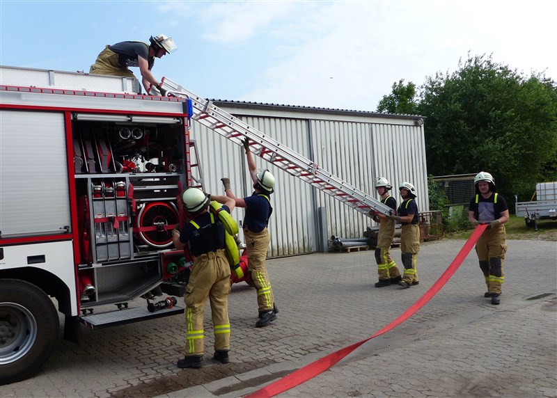 Hinter diesem Begriff verbirgt sich eine Trainingseinheit, in der wichtige Grundhandgriffe und Vorgehensweisen gefestigt werden sollen. Den Anfang machte ein Theoriepart mit dem Thema: Einsatzablauf und Einsatzentwicklung. Anhand einer fiktiven Lage wurde den Teilnehmern ein anfangs kleiner Einsatz beschrieben, welcher sich aufgrund verschiedener Faktoren und örtlichen Gegebenheiten zu einer umfangreichen Lage entwickelte. Insbesondere wurde hier das richtige Abgeben einer Lagemeldung an die Leitstelle, Kräftemanagement und Nachalamrierung, sowie die Ordnung an der Einsatzstelle erläutert.