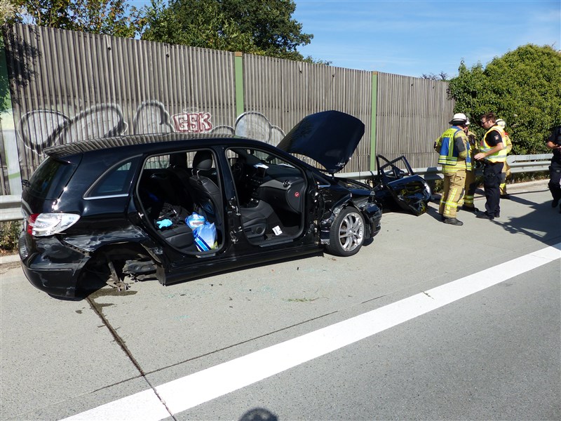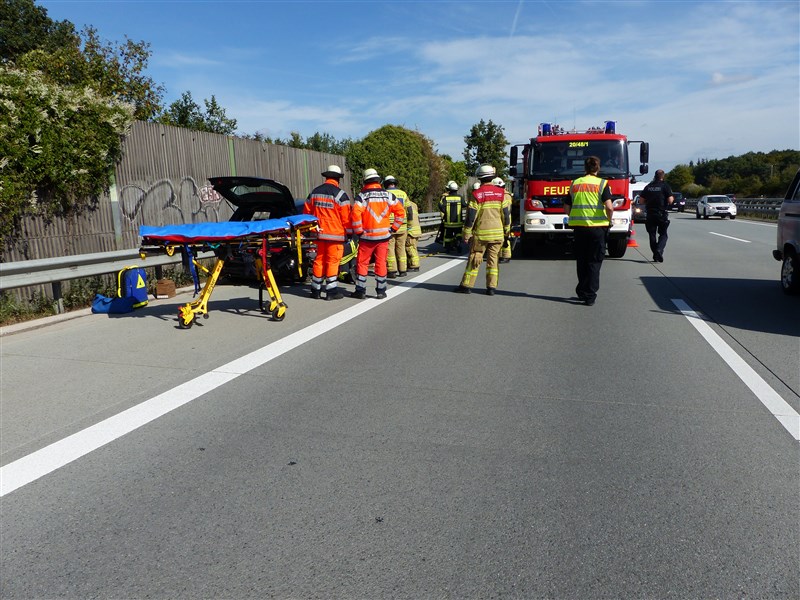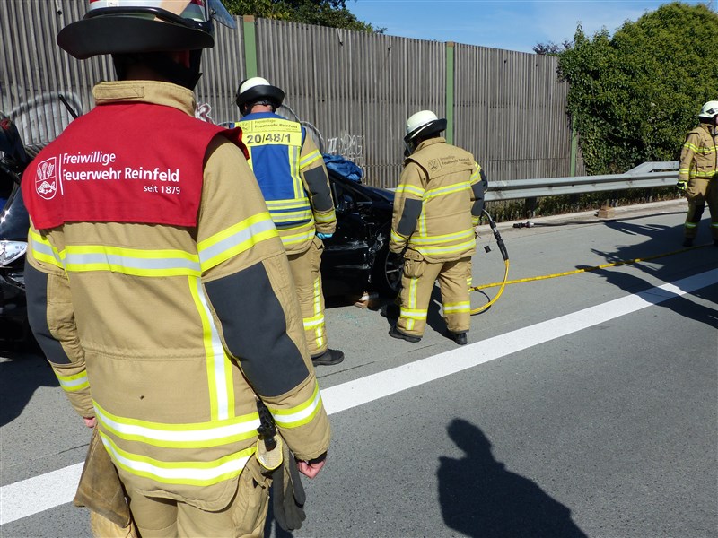 Auf der Autobahn 1 ereignete sich ein Verkehrsunfall mit einem PKW. Vor Ort mussten drei PKW-Insassen mittels hydraulischen Rettungsgerät aus ihrem Fahrzeug befreit werden, weil sich die Fahrzeugtüren nicht mehr öffnen ließen. Zwei der eingeschlossenen Insassen wurden bei dem Unfall leicht verletzt und durch uns erstversorgt. Weiterhin wurden Betriebsstoffe abgestreut und die Fahrzeuge spannungsfrei geschaltet.
