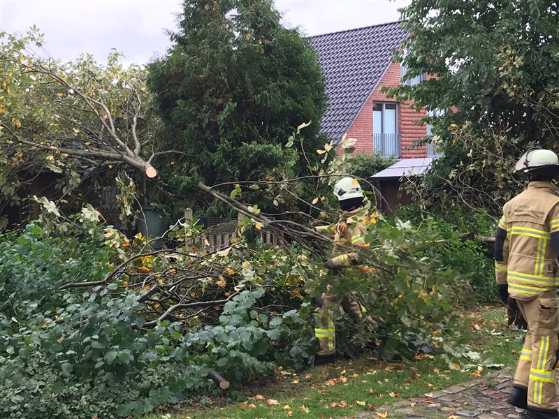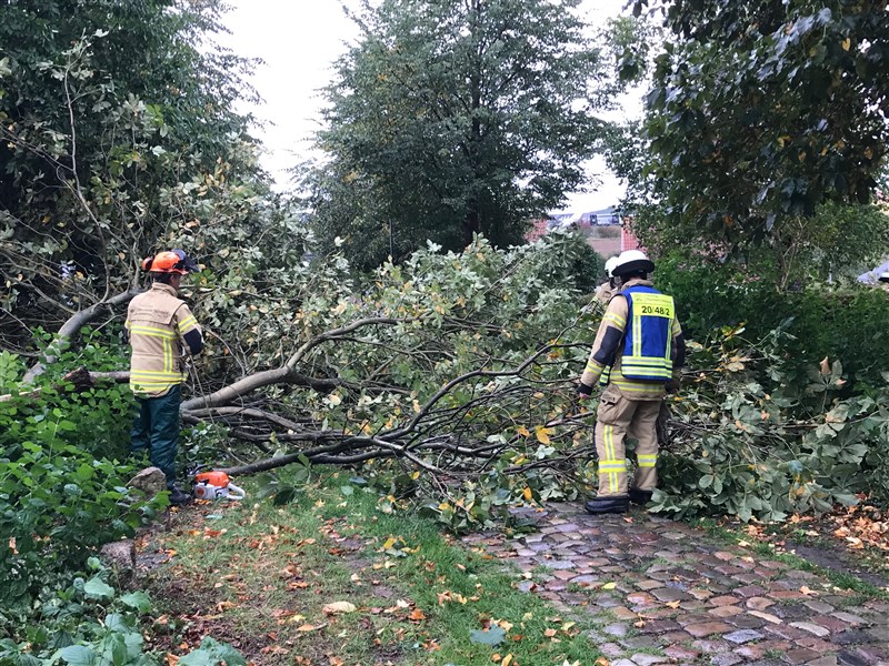 Der Baum wurde mittels Kettensäge gefällt und die Straße von Astwerk gereinigt.