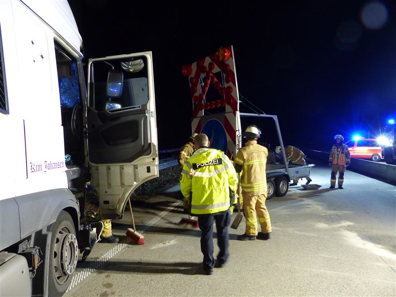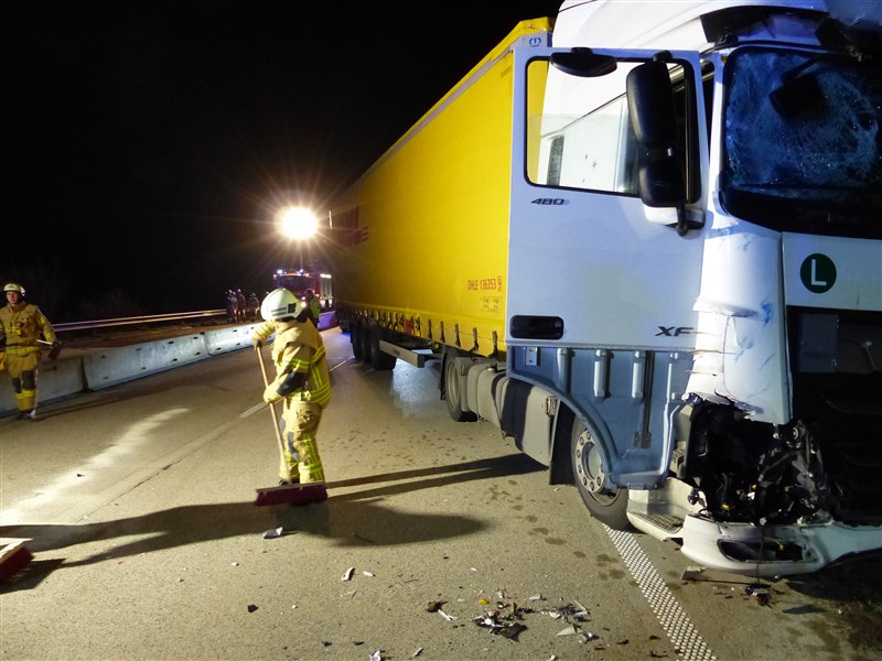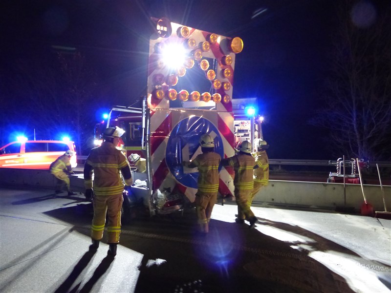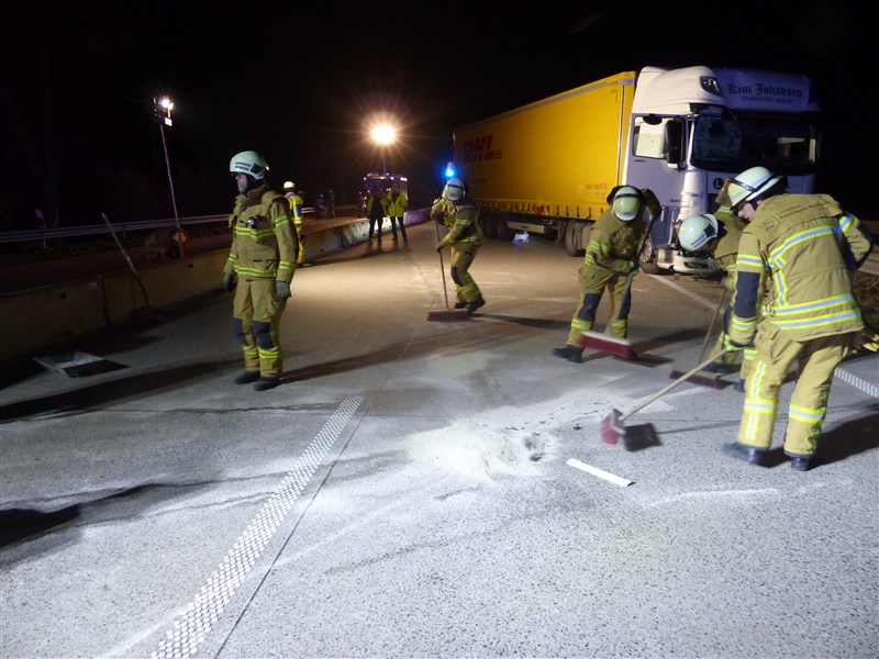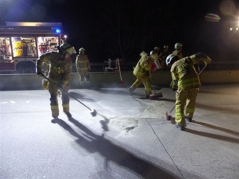 Im Baustellenbereich ereignete sich ein Verkehrsunfall. Wir wurden zum Abstreuen der ausgetretenen Betriebsstoffe alarmiert und sicherten die Unfallstelle gegen den fließenden Vekehr ab. Weiterhin wurden die Bergungsmaßnahmen unterstützt.
