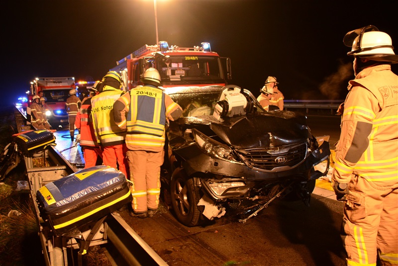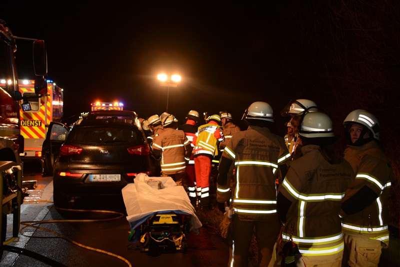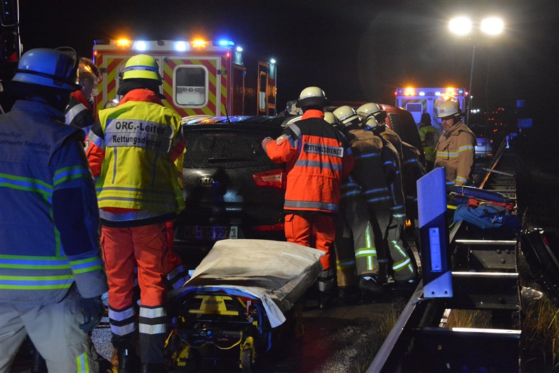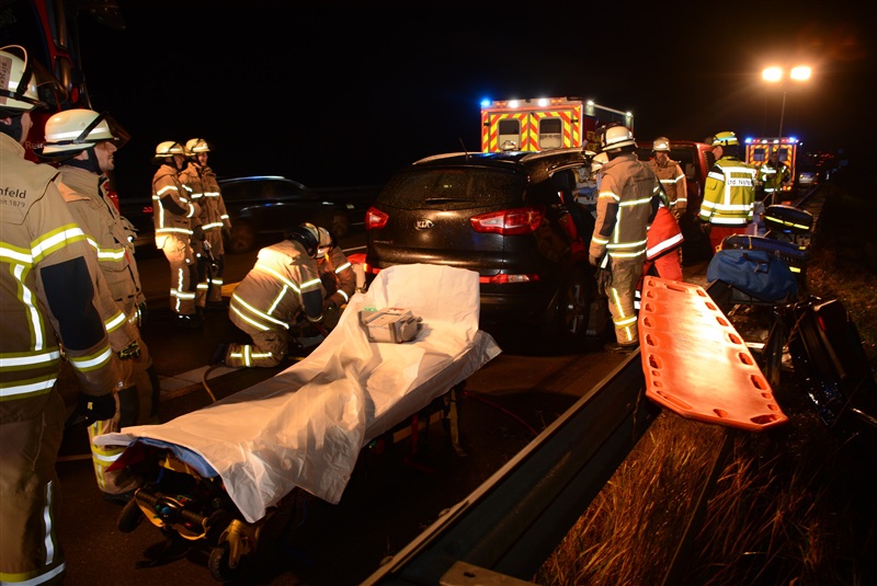 Auf der BAB1 in Richtung Hamburg ereignete sich ein Verkehrsunfall mit zwei PKW. In Absprache mit dem Rettungsdienst wurde eine verletzte Person mit hydraulischen Rettungsgerät aus dem Fahrzeug gerettet. Weiterhin wurden ausgelaufene Betriebsstoffe gebunden und die Unfallfahrzeuge spannungsfrei geschaltet. Insgesamt wurden vier Personen verletzt.