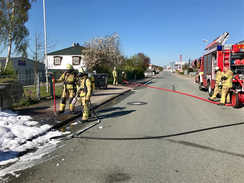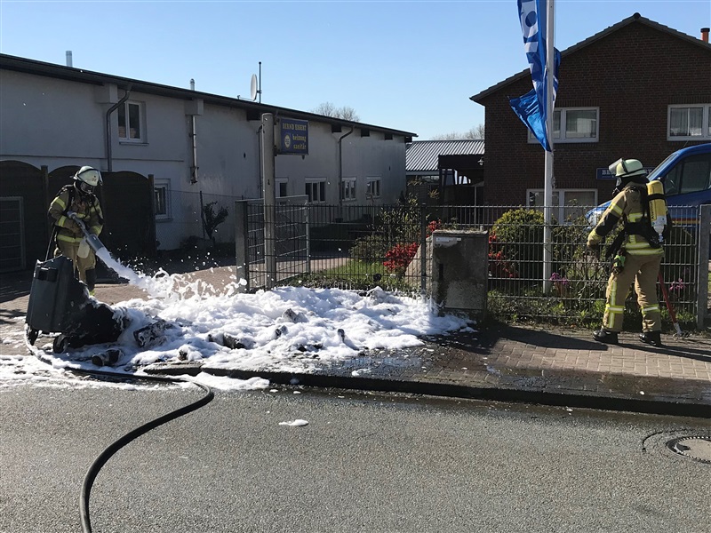 Eine 1100 Liter Mülltonne geriet aus unbekannter Ursache in Brand. Das Feuer wurde unter Atemschutz mit dem S-Rohr gelöscht, auseinander gezogen und anschließend mit Mehrbereichsschaummittel abgedeckt.