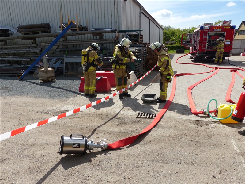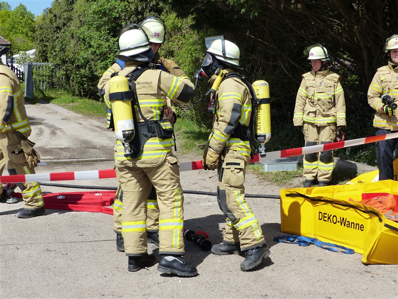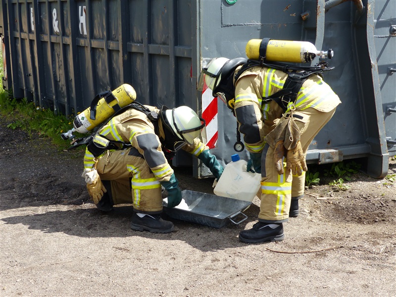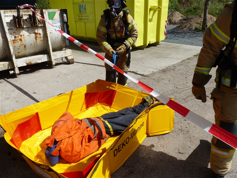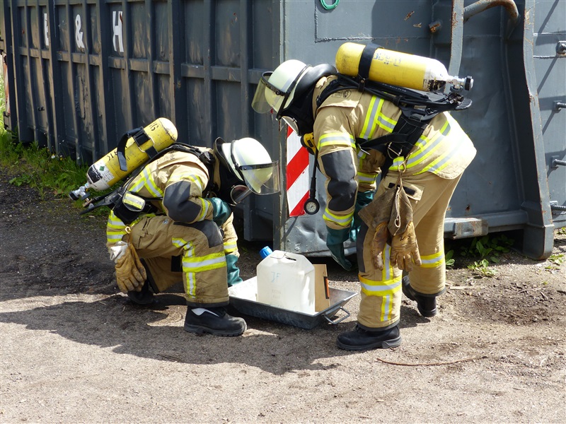 In diesem Szenario legten die Ausbilder besonderen Wert auf die Anwendung der sogenannten „GAMS-Regel“. Diese beinhaltet das Erkennen der Gefahr, welche von dem Stoff ausgehen kann. Weiterhin wird nach dieser Vorgehensweise ein Absperrbereich eingerichtet, die Menschenrettung unter besonderer Beachtung des Eigenschutz eingeleitet, sowie benötigte Spezialkräfte nachgefordert. Ebenfalls führte der Gruppenführer auf Grundlage der Erkundungsergebnisse des Angriffstrupps eine grobe Stoffbestimmung durch, woraus weitere Maßnahmen, wie zum Beispiel die Einrichtung einer Notdekontamination und das Sicherstellen des 3-fachen Brandschutzes (Wasser, Schaum, Pulver) folgten.