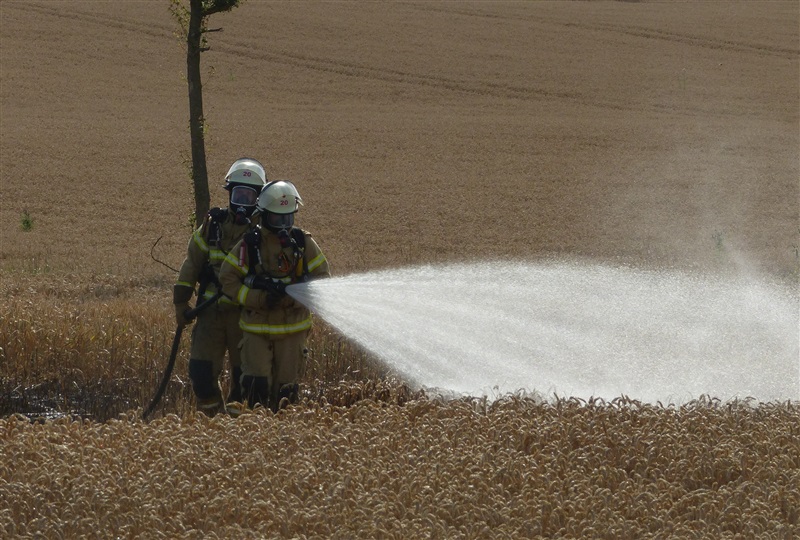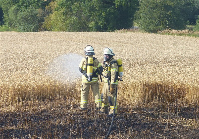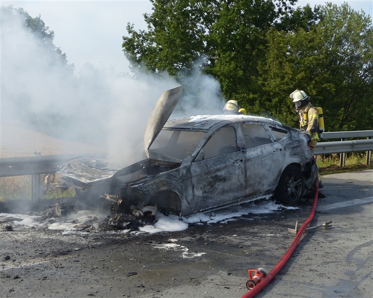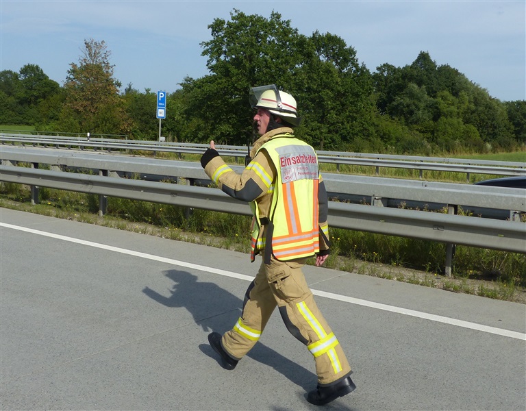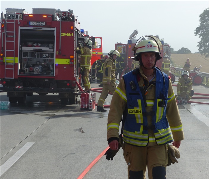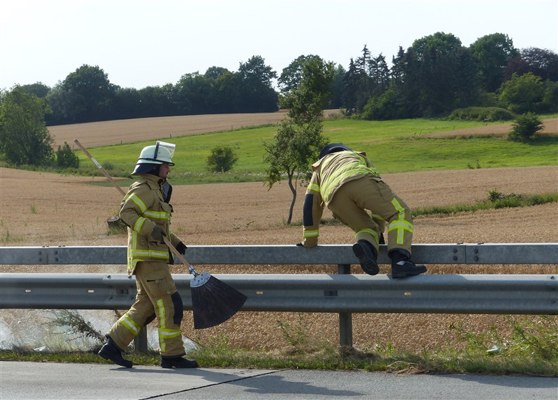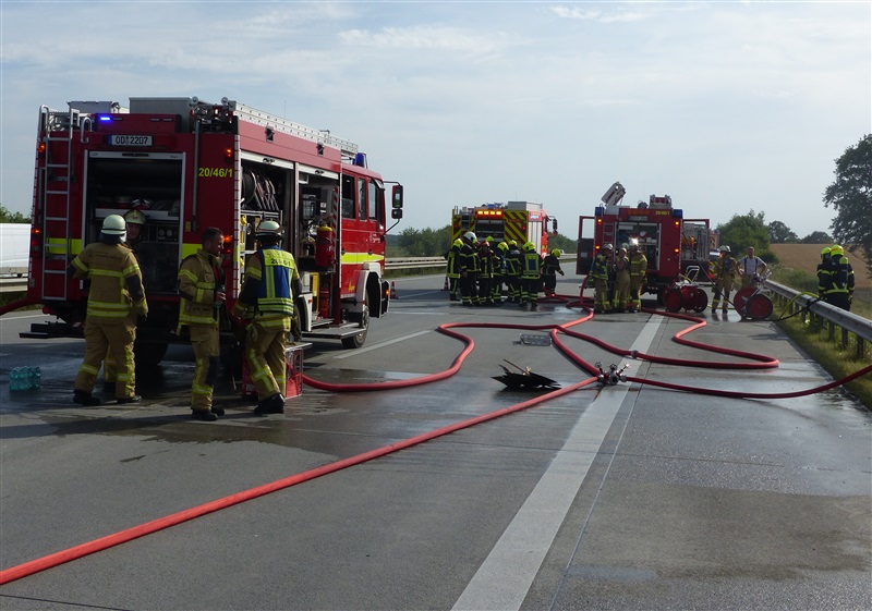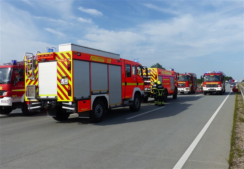 Beim Eintreffen der ersten Einsatzkräfte brannte ein PKW in voller Ausdehnung. Das Feuer hatte sich bereits über den Grünstreifen in ein, noch nicht abgeerntetes, Weizenfeld ausgebreitet. Auf Grund dieser Lage wurde für die Feuerwehr Reinfeld ein zweiter Alarm ausgelöst und die Feuerwehr Bad Oldesloe ebenfalls alarmiert, damit wir an der Einsatzstelle über genügend Löschwasser verfügen. Unter Atemschutz (insgesamt 5 Trupps) und mit 4 C-Rohren sowie einem Mehrbereichsschaum-Angriff wurde das Feuer bekämpft und im Anschluss mit der Wärmebildkamera kontrolliert.