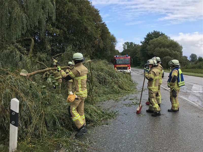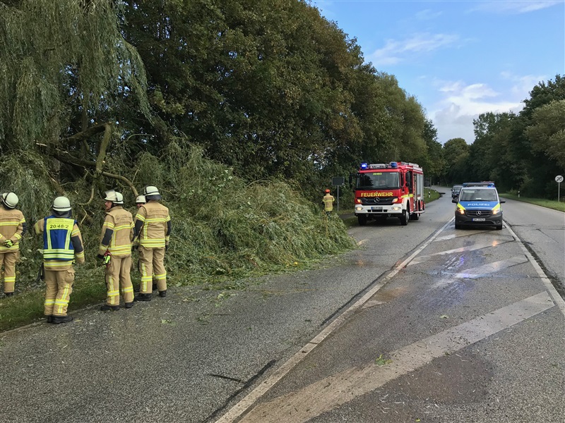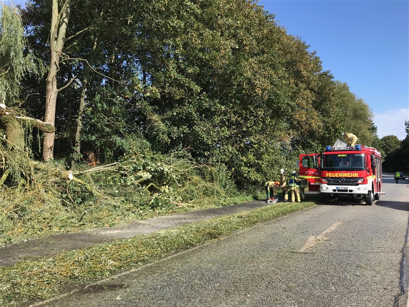 Ein umgestürzter Baum blockierte die B75 Richtung Bad Oldesloe. Der Baum wurde mittels Kettensäge und Muskelkraft zerkleinert und beseitigt. Während der Aufräumarbeiten musste die B75 im betroffenen Bereich halbseitig gesperrt werden.