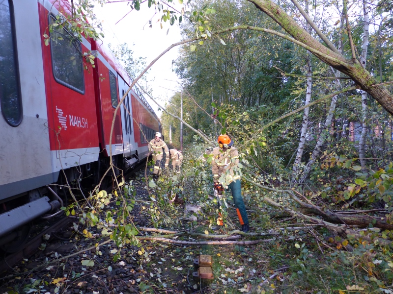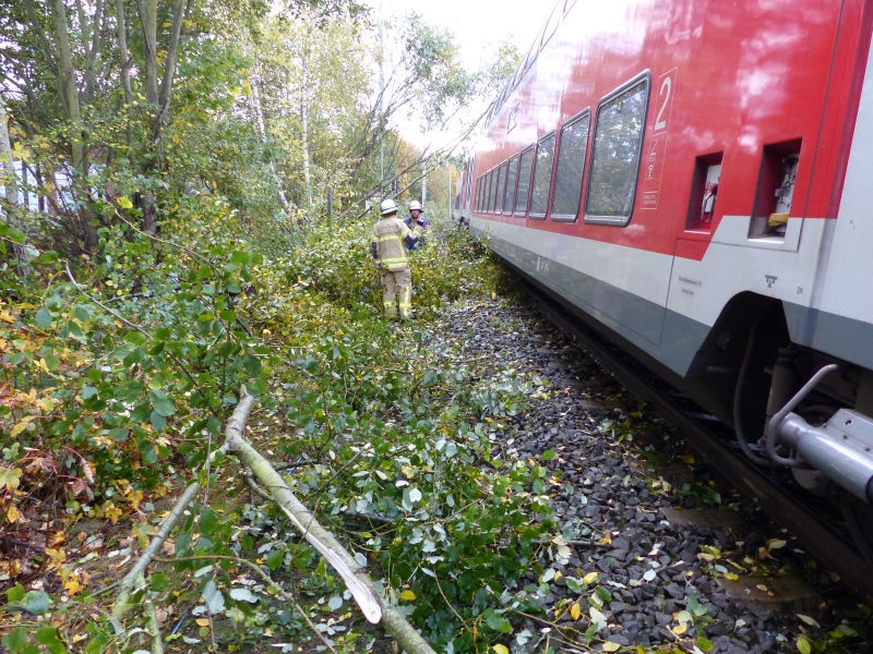 Im Zuge eines kurzzeitigen Unwetters blieb ein Zug auf freier Strecke im Bereich Fünfkaten liegen. Windbruch hatte den Stromabnehmer zerstört, sodass keine Weiterfahrt möglich war. Die Einsatzkräfte erdeten die Oberleitung nach deren Abschaltung durch die Leitstelle der Bahn und beseitigten herabgestürzte Gehölze. Während der Arbeiten war die Bahnstrecke in beide Richtungen voll gesperrt.