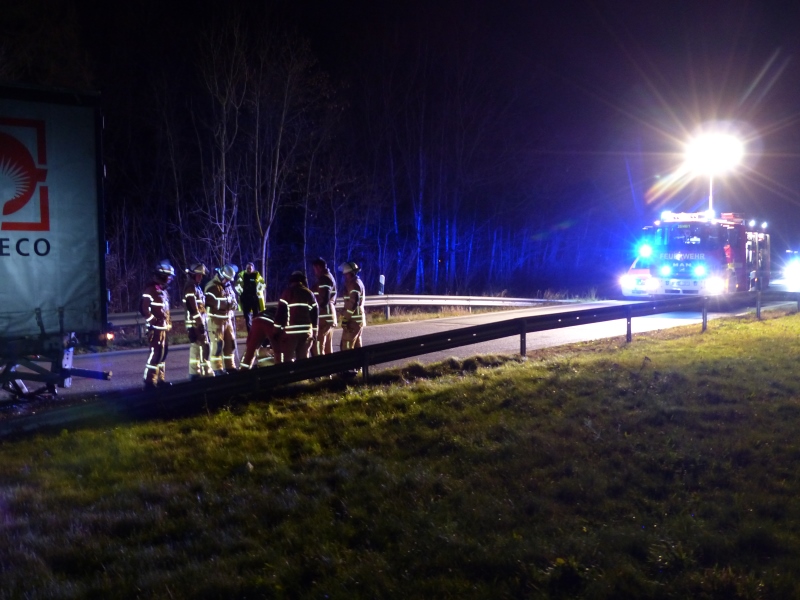 Nach einem Unfall zwischen einem PKW und dem Auflieger eines LKW kam es, während der Bergungsarbeiten durch den Abschleppdienst, zu einer Rauchentwicklung an dem beteiligten PKW. Bei Eintreffen der ersten Einsatzkräfte konnte keine weitere Rauchentwicklung festgestellt werden. Wir kontrollierten beide Fahrzeuge mittels der Wärmebildkamera, ebenfalls ohne Feststelung.