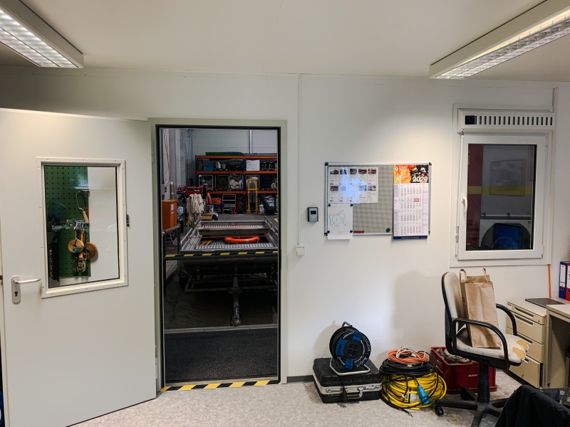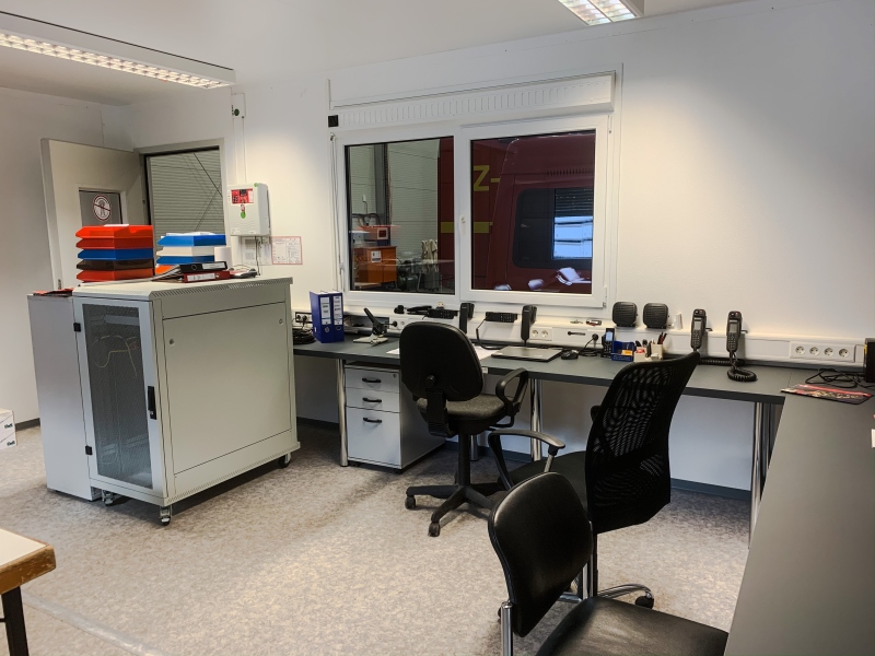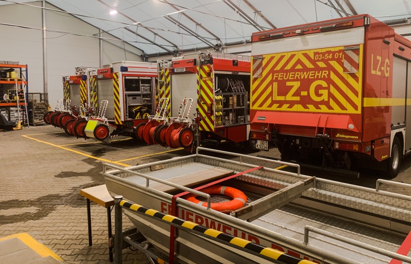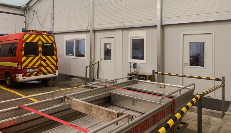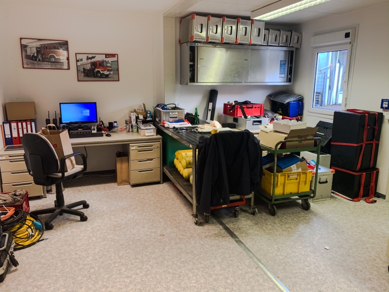 Darüber hinaus ist die Werkstatt des Teams Gerätewartung und auch die komplette Verwaltungs- und Einsatzleitinfrastruktur in Containerbauten untergebracht.