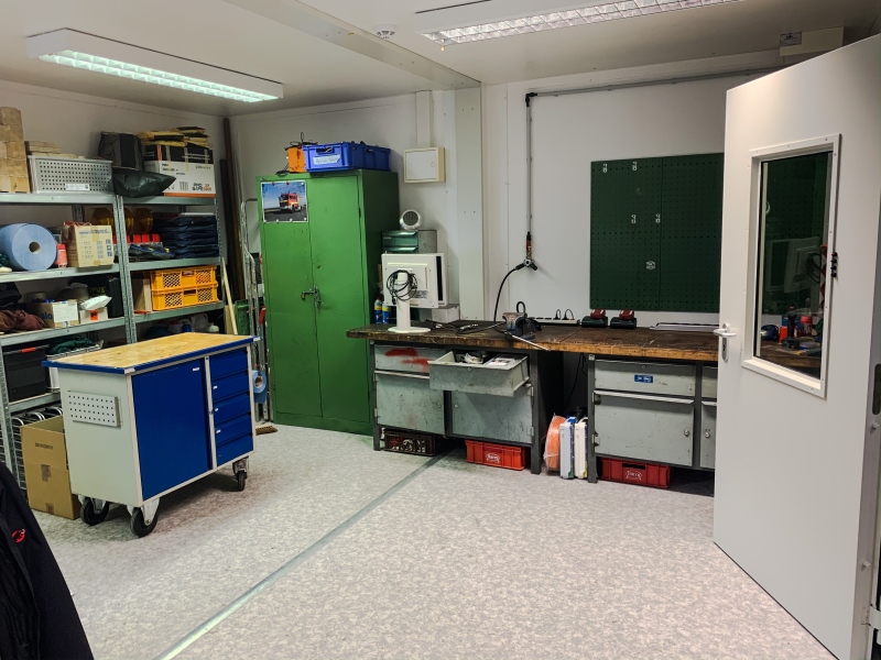 Der neue Standort erleichtert uns aber auch die tägliche Arbeit ungemein. Es ist deutlich mehr Platz vorhanden, der die notwendigen Arbeiten an Fahrzeugen und Gerätschaft zulässt. Auch das Büro, die Werkstatt und die Sozialräume konnten geringfügig an Fläche zulegen und unsere Situation etwas verbessern.