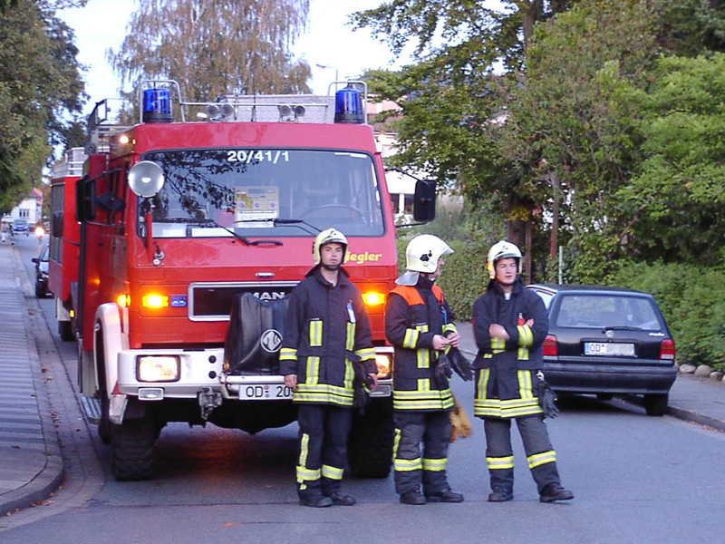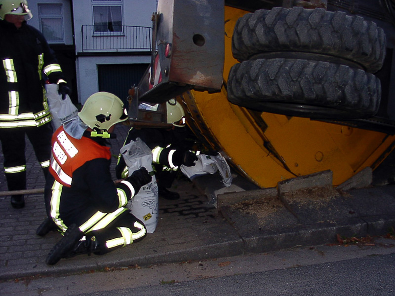 | Auf einer Baustelle ist am Montagabend ein Mobilkran umgestürzt. Dieser verfehlte nur knapp das nebenstehende Haus. Die Feuerwehr Reinfeld streute die ausgelaufenen Betriebsstoffe ab und übergab die Einsatzstelle der Polizei. |
