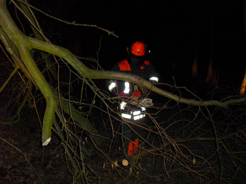 | Die Freiwillige Feuerwehr Reinfeld beseitigte den herunterhängenden Ast eines Baumes. |