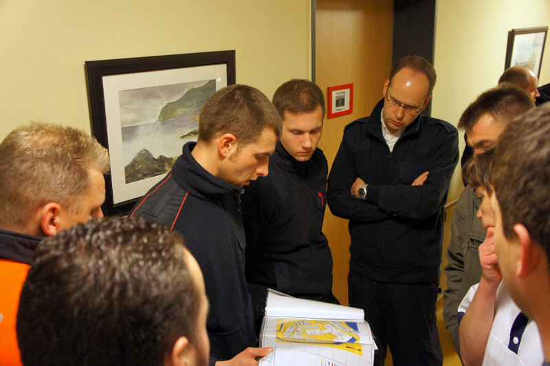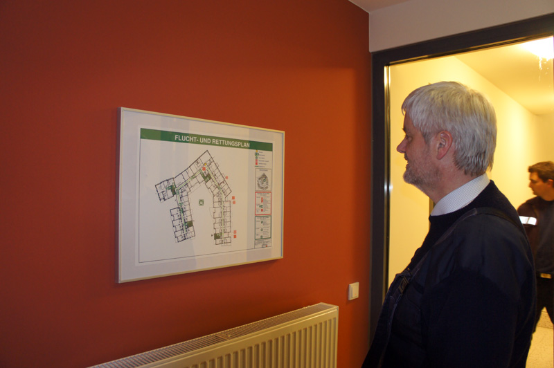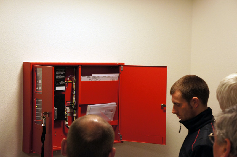 Die Führungskräfte schauten sich das gesamte Gebäude ganz genau an und ließen sich in die brandschutztechnischen Einrichtungen einweisen. Auch die Leiterin der mit bis zu 14 Bewohnern belegten DRK-Pflegestation, Frau Melander, stand uns Rede und Antwort. Nach gut 1 1/2 Stunden war die Begehung abgeschlossen.