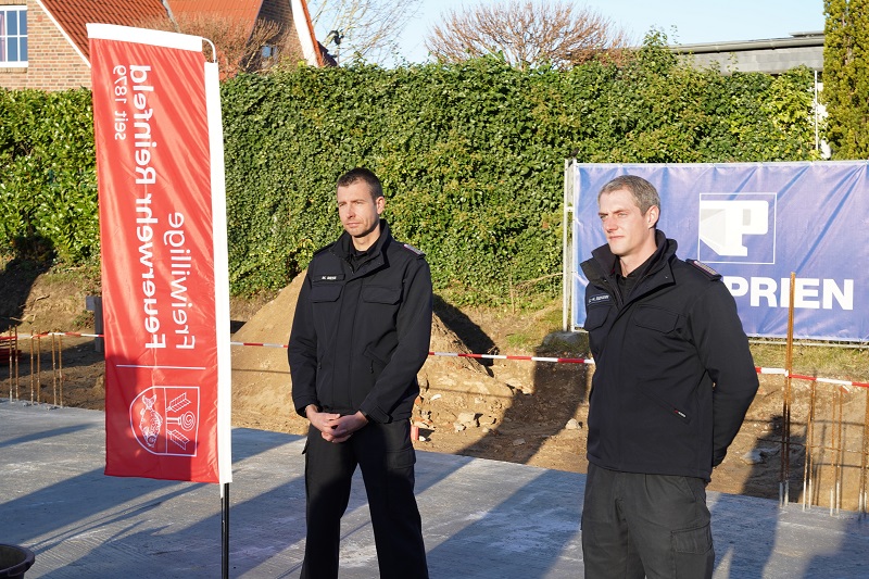 Nach kurzen, freundlichen Worten von Bürgervorsteher Gerd Herrmann und Bürgermeister Roald Wramp, legten die beiden gemeinsam mit unserem Wehrführer Gerd-Heinrich den Grundstein.