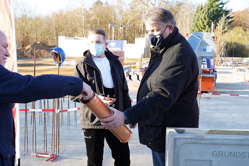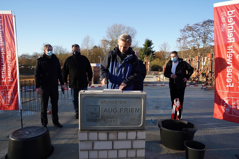 Einen finalen Platz im neuen Gebäude gibt es für den Grundstein zwar noch nicht, doch „wir werden einen gebührend prominenten Ort finden […]“, an welchem der Stein später sitzen wird sagte Nils Ladewig, Prokurist bei Prien.